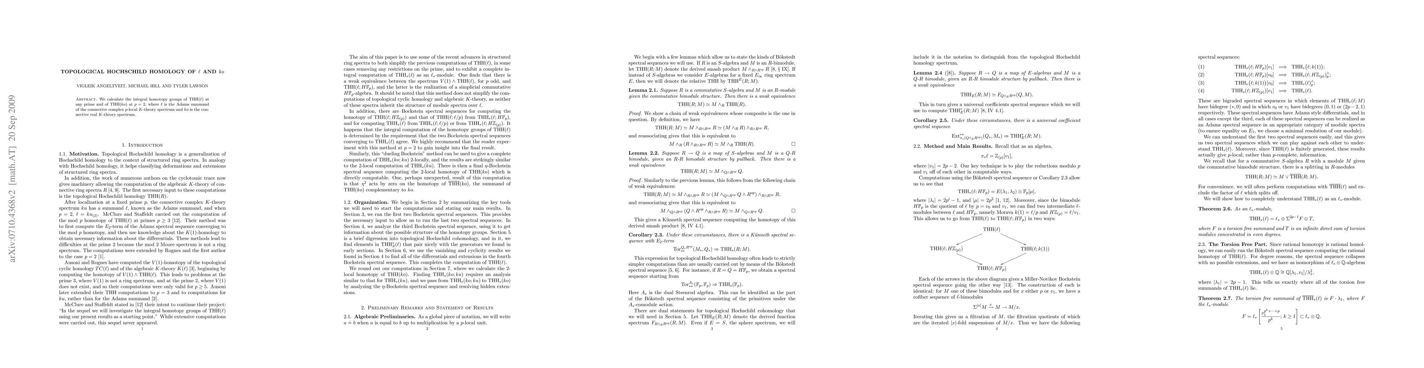 We calculate the integral homotopy groups of THH(l) at any prime and of THH(ko) at p=2, where l is the Adams summand of the connective complex p-local K-theory spectrum and ko is the connective real K-theory spectrum.