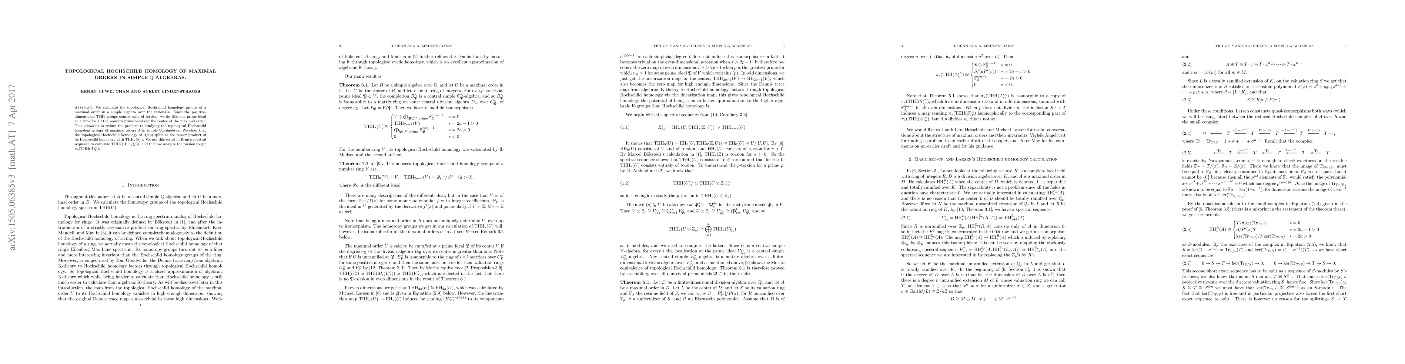 This paper calculates the topological Hochschild homology (THH) groups of maximal orders in central algebras over the rationals, demonstrating that these groups are torsional. It breaks down the problem by examining THH groups at each nonzero prime ideal, ultimately focusing on simple algebras over p-adic rationals, and uses Brun's spectral sequence to determine the THH groups for these cases.