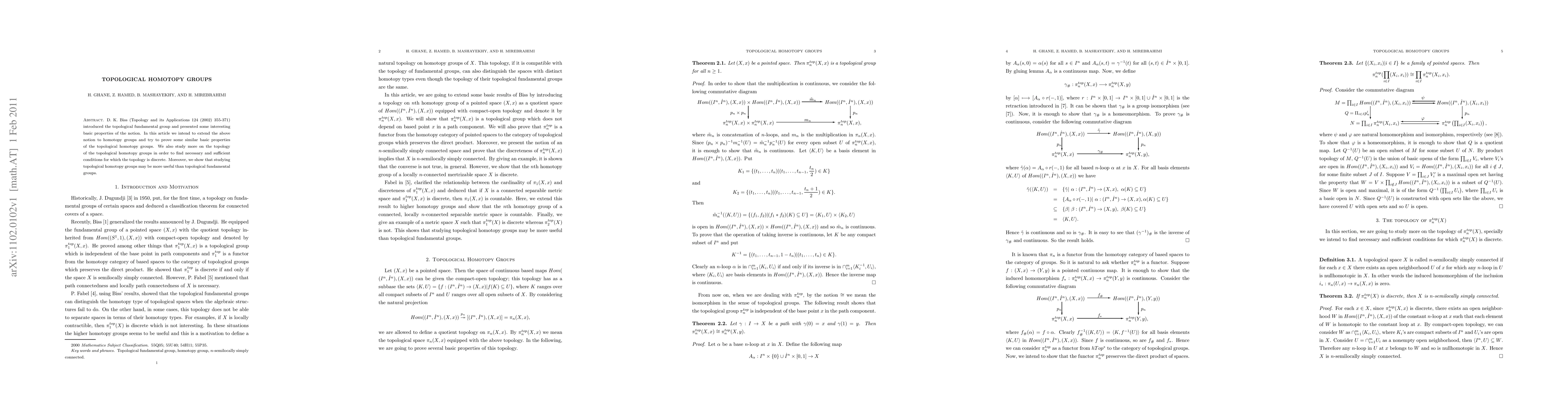 This paper extends the concept of topological fundamental groups to topological homotopy groups, proving similar basic properties and exploring the topology of these groups. It also investigates necessary and sufficient conditions for the topology to be discrete and argues that studying topological homotopy groups can be more useful than their fundamental counterparts.