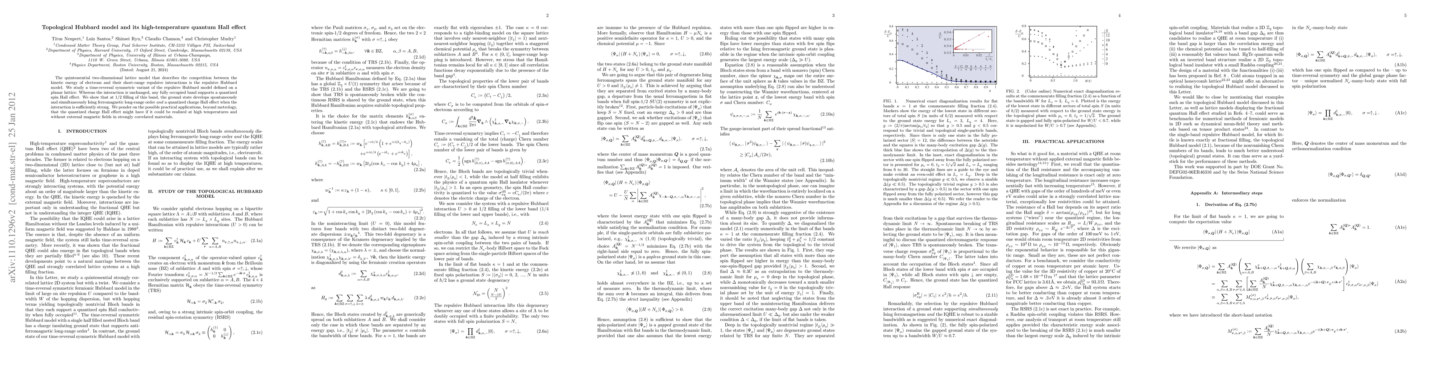 The quintessential two-dimensional lattice model that describes the competition between the kinetic energy of electrons and their short-range repulsive interactions is the repulsive Hubbard model. We study a time-reversal symmetric variant of the repulsive Hubbard model defined on a planar lattice: Whereas the interaction is unchanged, any fully occupied band supports a quantized spin Hall effect. We show that at 1/2 filling of this band, the ground state develops spontaneously and simultaneously Ising ferromagnetic long-range order and a quantized charge Hall effect when the interaction is sufficiently strong. We ponder on the possible practical applications, beyond metrology, that the quantized charge Hall effect might have if it could be realized at high temperatures and without external magnetic fields in strongly correlated materials.