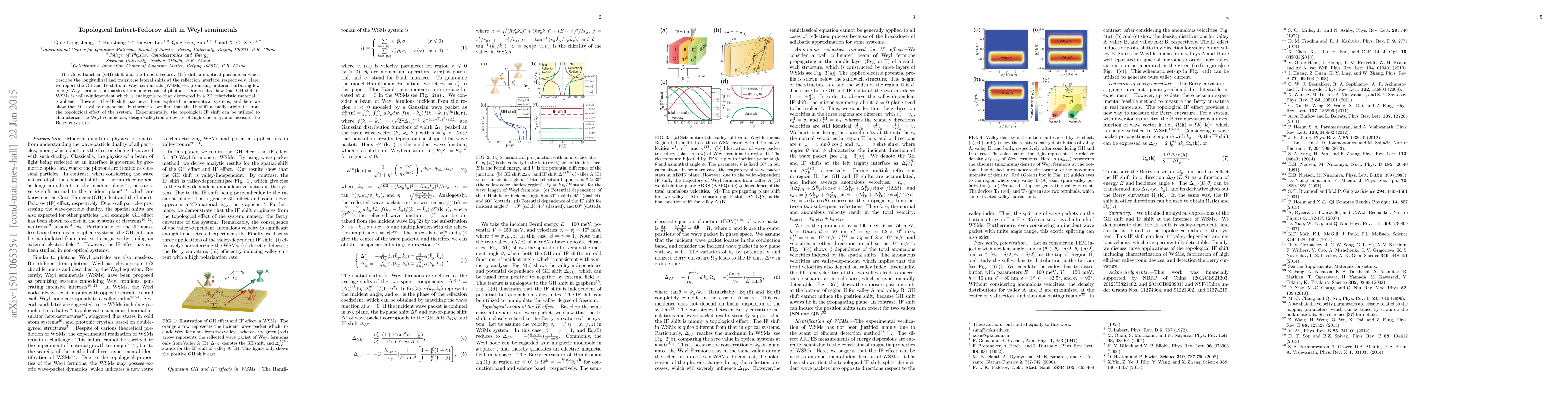 The Goos-H\"anchen (GH) shift and the Imbert-Fedorov (IF) shift are optical phenomena which describe the longitudinal and transverse lateral shifts at the reflection interface, respectively. Here, we report the GH and IF shifts in Weyl semimetals (WSMs) - a promising material harboring low energy Weyl fermions, a massless fermionic cousin of photons. Our results show that GH shift in WSMs is valley-independent which is analogous to that discovered in a 2D relativistic material - graphene. However, the IF shift has never been explored in non-optical systems, and here we show that it is valley-dependent. Furthermore, we find that the IF shift actually originates from the topological effect of the system. Experimentally, the topological IF shift can be utilized to characterize the Weyl semimetals, design valleytronic devices of high efficiency, and measure the Berry curvature.