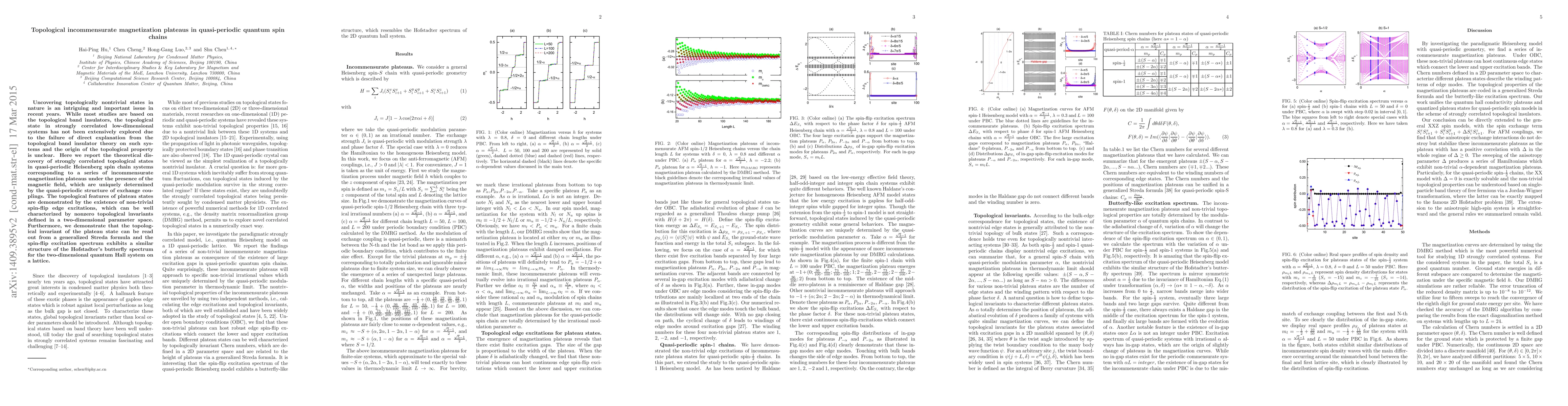 This paper reports the theoretical discovery of topologically nontrivial states in quasi-periodic Heisenberg spin chains, characterized by incommensurate magnetization plateaus and non-trivial spin-flip edge excitations, with topological invariants derived from a generalized Streda formula. The findings reveal unique topological properties in strongly correlated low-dimensional systems.