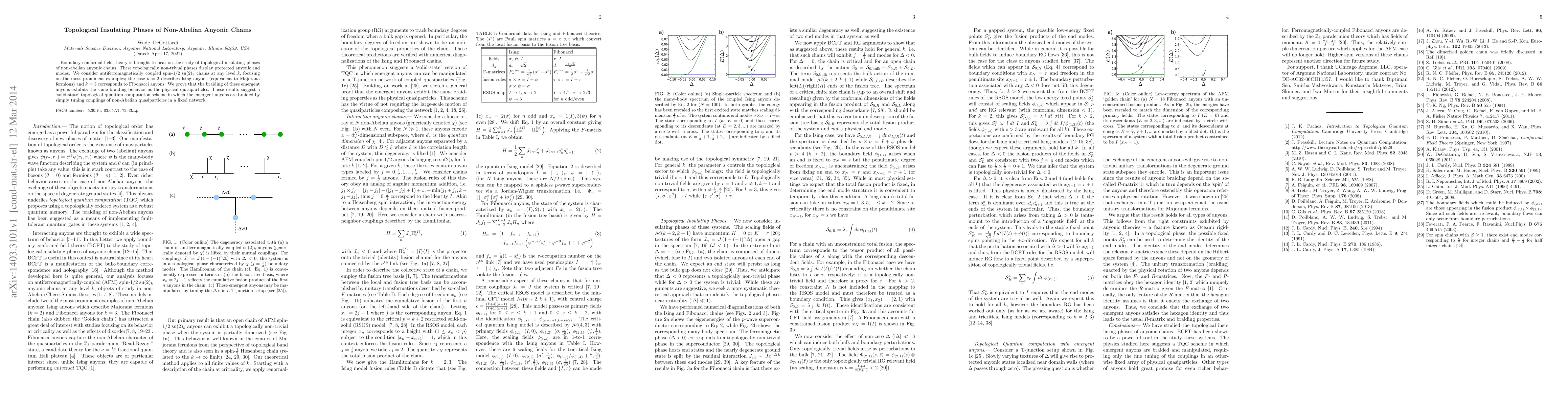 Boundary conformal field theory is brought to bear on the study of topological insulating phases of non-abelian anyonic chains. These topologically non-trivial phases display protected anyonic end modes. We consider antiferromagnetically coupled spin-1/2 su(2)$_k$ chains at any level $k$, focusing on the most prominent examples; the case $k = 2$ describes Ising anyons (equivalent to Majorana fermions) and $k = 3$ corresponds to Fibonacci anyons. We prove that the braiding of these emergent anyons exhibits the same braiding behavior as the physical quasiparticles. These results suggest a `solid-state' topological quantum computation scheme in which the emergent anyons are braided by simply tuning couplings of non-Abelian quasiparticles in a fixed network.