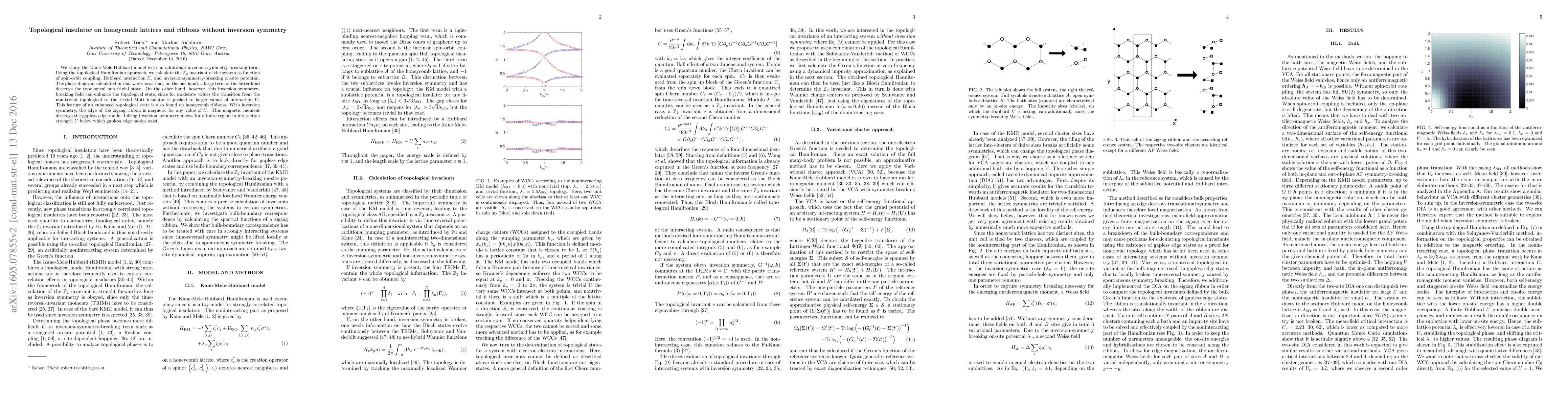 This study investigates the Kane-Mele-Hubbard model with an inversion-symmetry-breaking term, revealing that moderate inversion symmetry breaking can enhance topological states, even in honeycomb ribbons, where it enables gapless edge modes under certain interaction strengths.