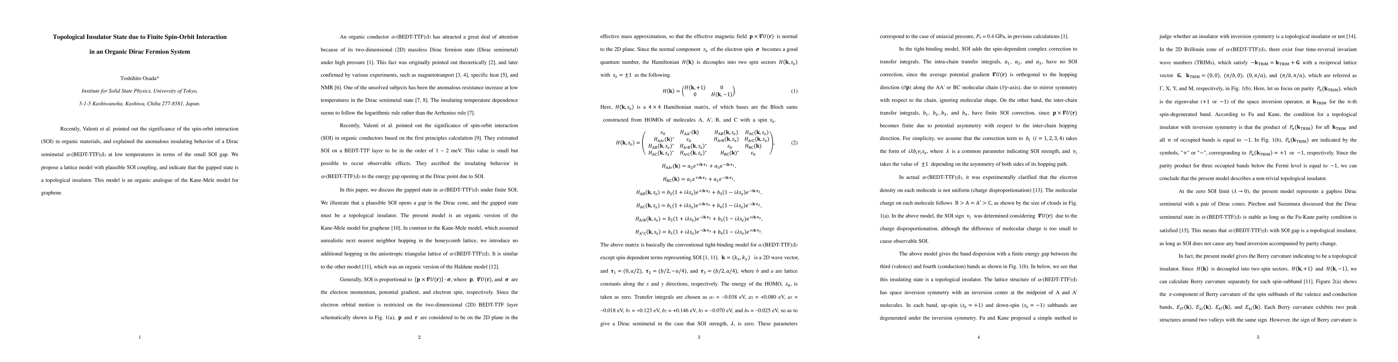 A new model explains how a specific organic material becomes an insulator at low temperatures due to spin-orbit interaction, proposing it as a topological insulator. The discovery is analogous to the Kane-Mele model for graphene.