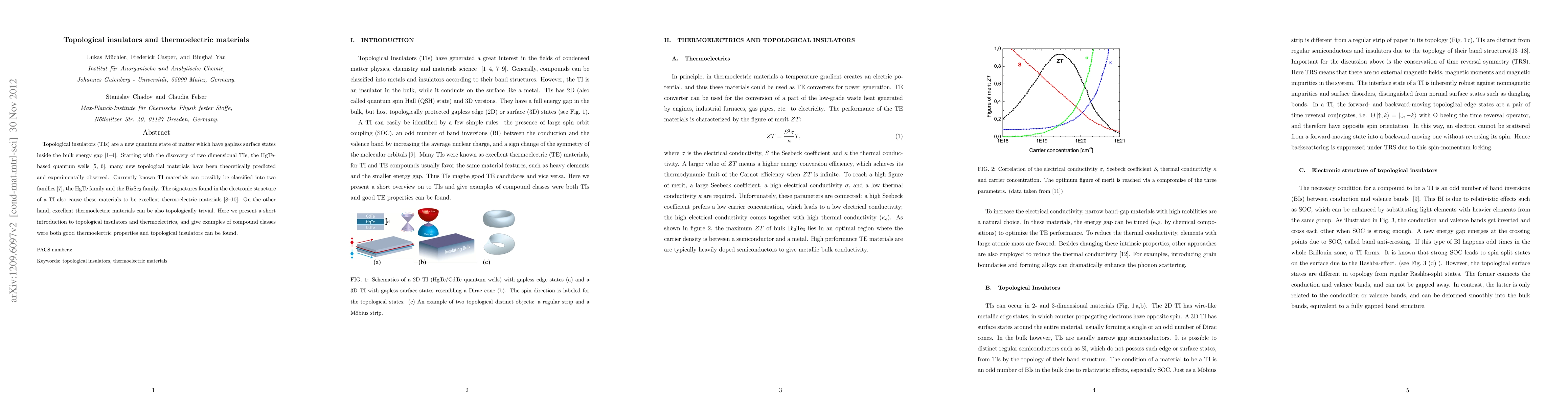 This paper introduces topological insulators (TIs), a novel quantum state of matter with unique surface states, and discusses their potential as thermoelectric materials. It highlights the discovery of TIs, particularly in HgTe and Bi2Se families, and explores the intersection of TIs and thermoelectric properties.
