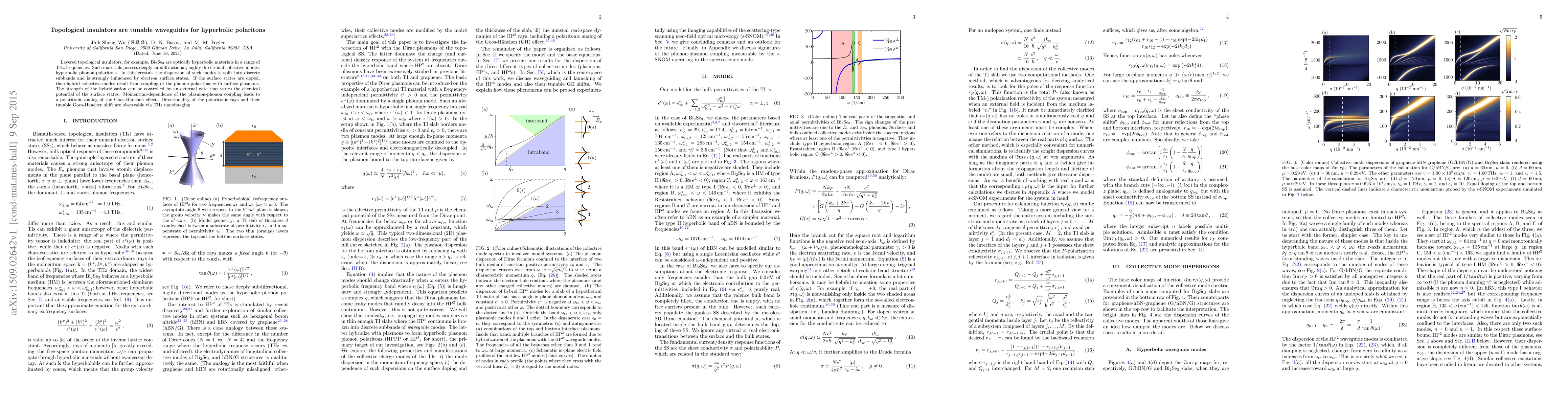 Researchers discovered that topological insulators can act as tunable waveguides for hyperbolic polaritons, which exhibit subdiffractional and directional collective modes. The strength of these hybrid collective modes can be controlled by an external gate, enabling tunable Goos-H"anchen shift observable via THz nanoimaging.