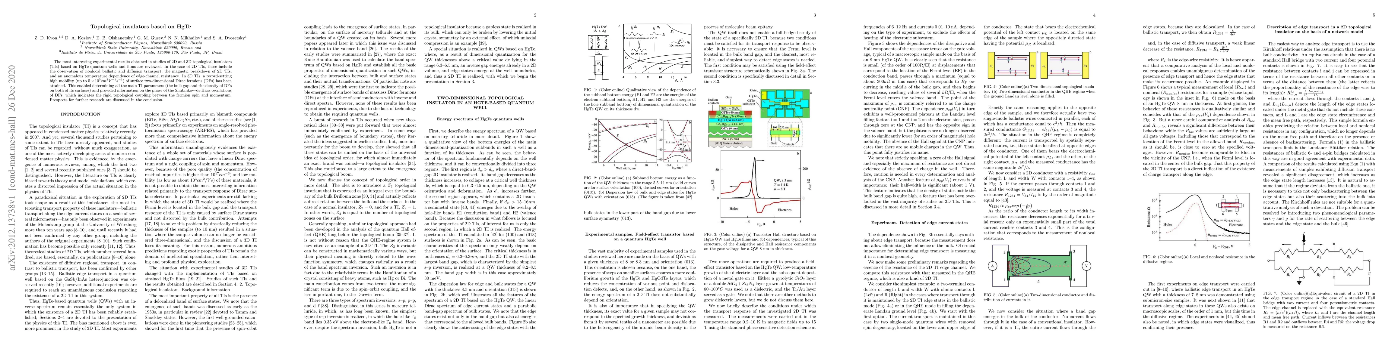 The most interesting experimental results obtained in studies of 2D and 3D topological insulators (TIs) based on HgTe quantum wells and films are reviewed. In the case of 2D TIs, these include the observation of nonlocal ballistic and diffusion transport, the magnetic breakdown of 2D TIs, and an anomalous temperature dependence of edge-channel resistance. In 3D TIs, a record-setting high mobility of surface two-dimensional Dirac fermions (DFs) has been attained. This enabled determining all the main TI parameters (the bulk gap and the density of DFs on both of its surfaces) and provided information on the phase of the Shubnikov - de Haas oscillations of DFs, which indicates the rigid topological coupling between the fermion spin and momentum. Prospects for further research are discussed in the conclusion.