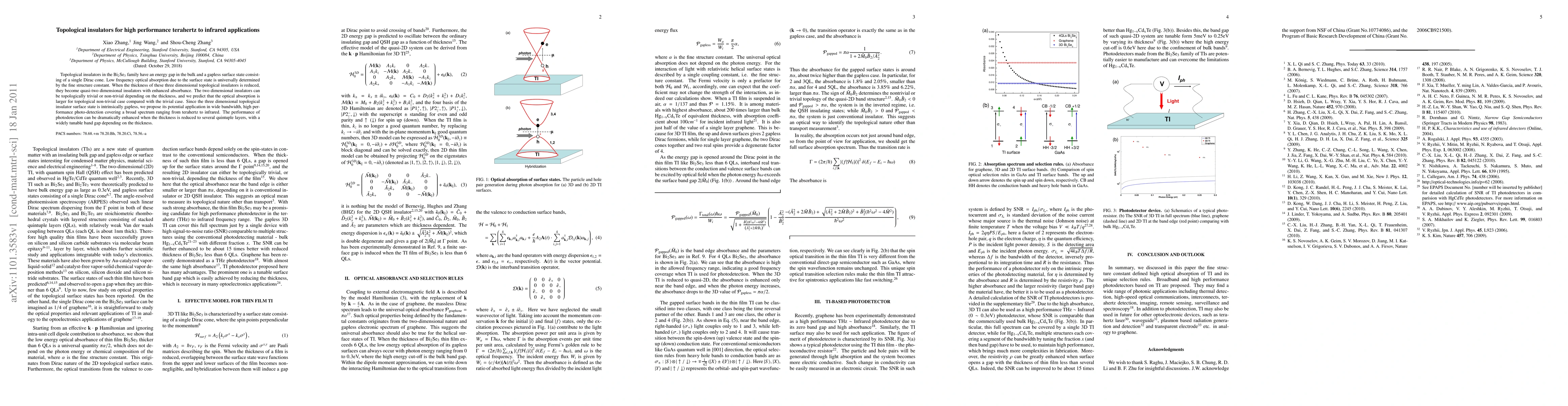 This paper investigates the optical properties of Bi2Se3 topological insulators, highlighting their enhanced absorbance and tunable band gap when reduced to quasi-two-dimensional forms. It proposes their potential for high-performance photo-detection across a broad spectrum from terahertz to infrared due to their intrinsic gapless surface state.