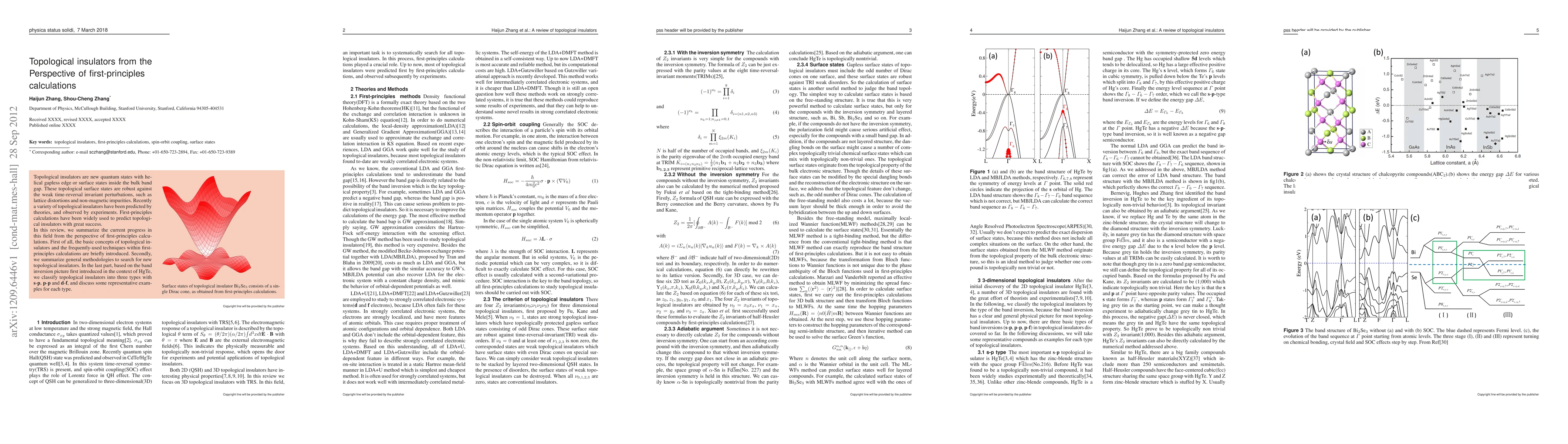 This paper reviews the advancements in predicting topological insulators using first-principles calculations, introducing basic concepts and methodologies. It classifies topological insulators into three types based on band inversion, highlighting representative examples for each.