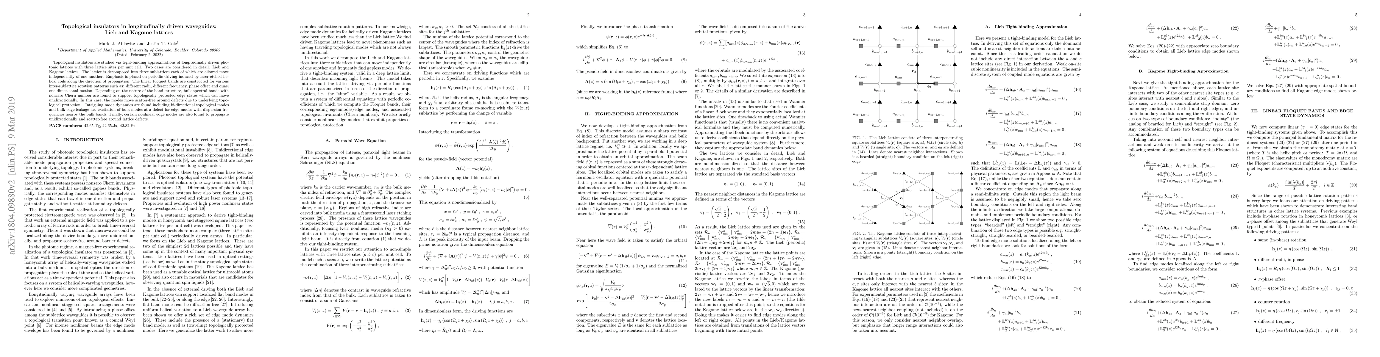 This paper investigates topological insulators in photonic waveguides modeled by Lieb and Kagome lattices under periodic longitudinal driving. The study reveals topologically protected edge states that exhibit unidirectional propagation and scatter-free dynamics around defects, alongside intriguing phenomena like bi-directional modes and bulk-edge leakage.