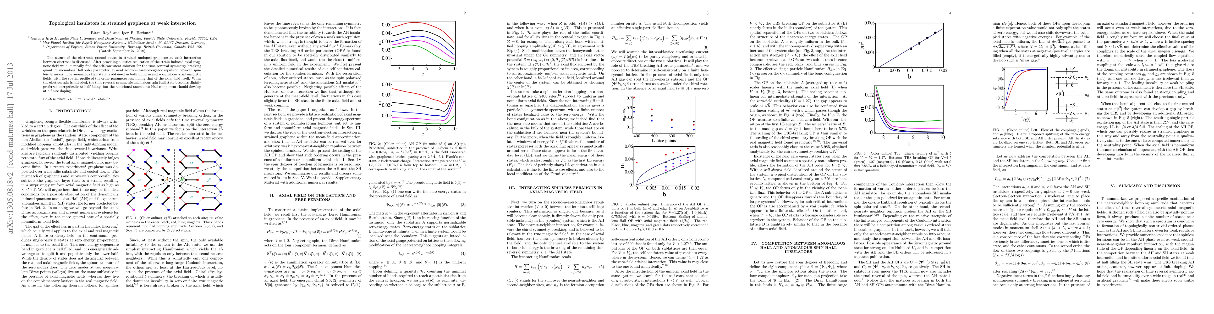 Researchers discovered topological insulators in strained graphene at weak interaction, exhibiting quantum anomalous Hall order-parameter, and found that the state prefers to develop at half filling with electron spin included.