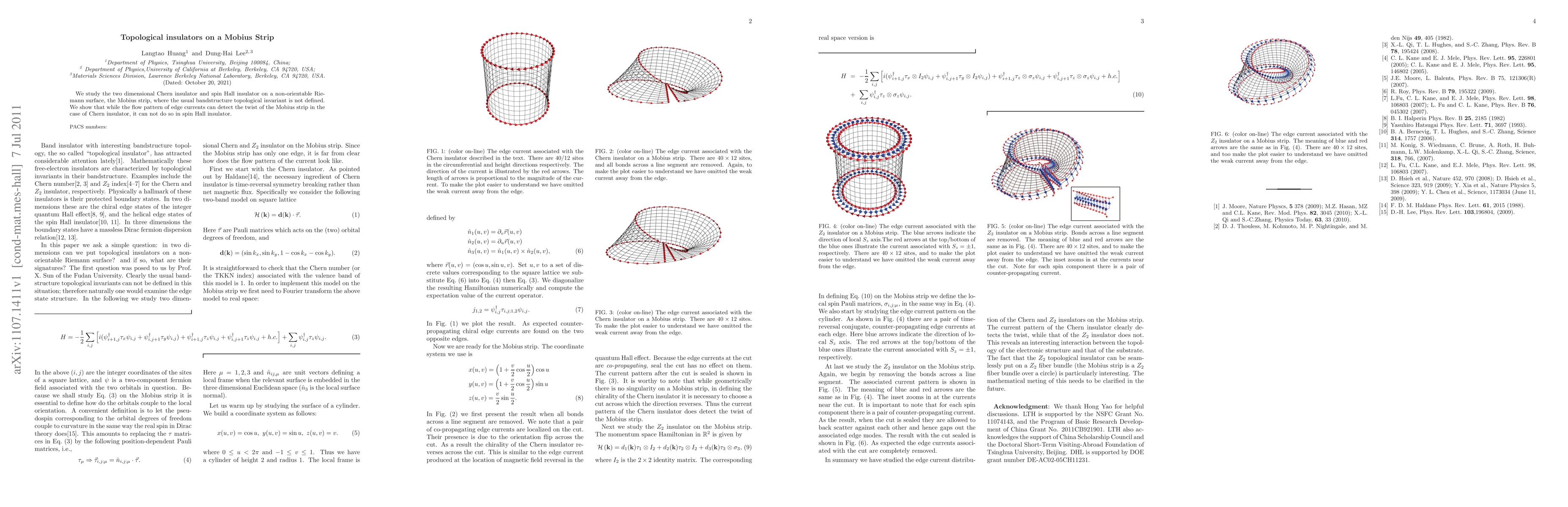 We study the two dimensional Chern insulator and spin Hall insulator on a non-orientable Riemann surface, the Mobius strip, where the usual bandstructure topological invariant is not defined. We show that while the flow pattern of edge currents can detect the twist of the Mobius strip in the case of Chern insulator, it can not do so in spin Hall insulator.