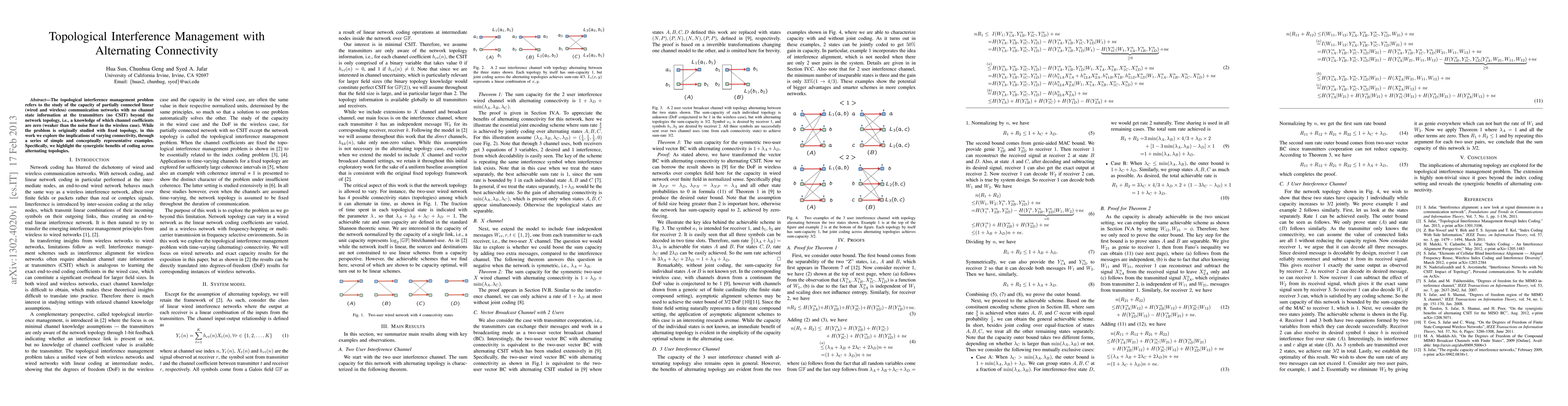 This paper investigates topological interference management in communication networks without channel state information at transmitters, focusing on the impact of varying connectivity. It demonstrates the benefits of coding across networks with alternating topologies.