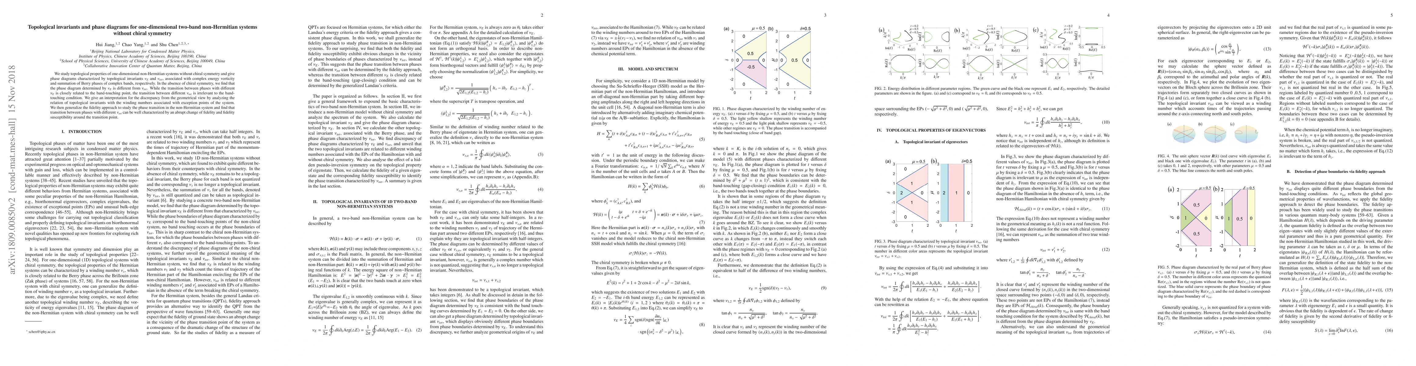 This paper investigates topological invariants and phase diagrams in one-dimensional non-Hermitian systems lacking chiral symmetry, identifying distinct topological invariants $\nu_E$ and $\nu_{total}$ that characterize different phases. The study reveals a discrepancy in the phase transitions associated with these invariants, with $\nu_{total}$ transitions showing an abrupt fidelity change, unlike $\nu_E$ transitions.
