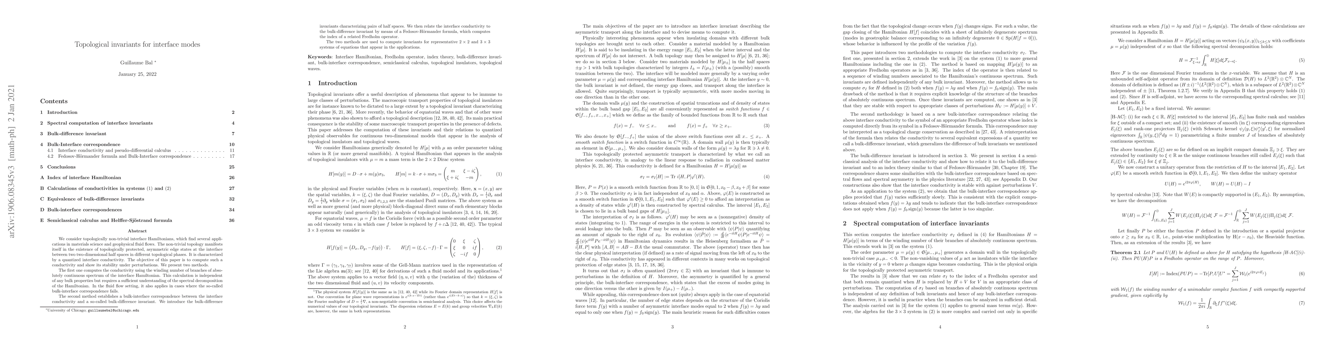 Researchers developed two methods to compute topological invariants for interface modes, enabling the study of protected edge states and conductivity in materials science and geophysical fluid flows.