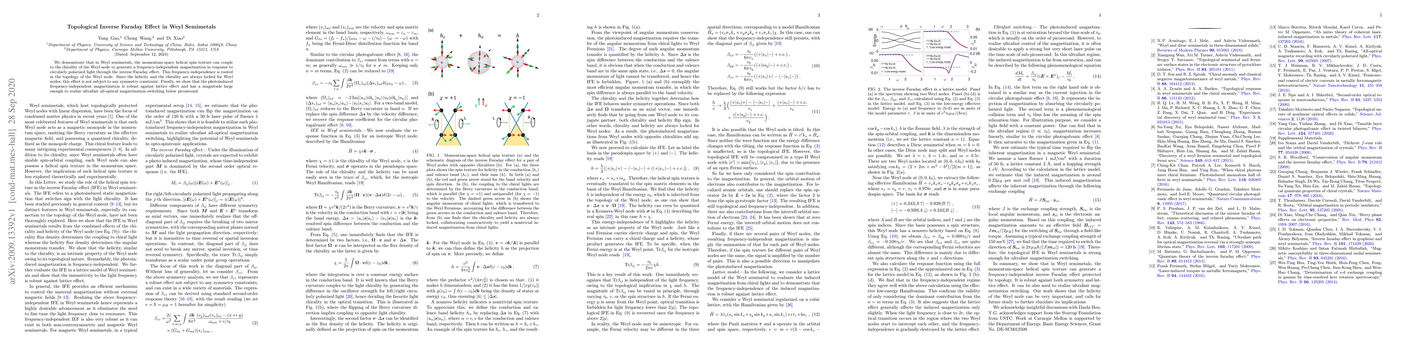 Summary: In Weyl semimetals, the inverse Faraday effect leads to frequency-independent magnetization due to the topological coupling between spin texture and chirality, allowing for ultrafast all-optical magnetization switching below picoseconds, unaffected by lattice effects.