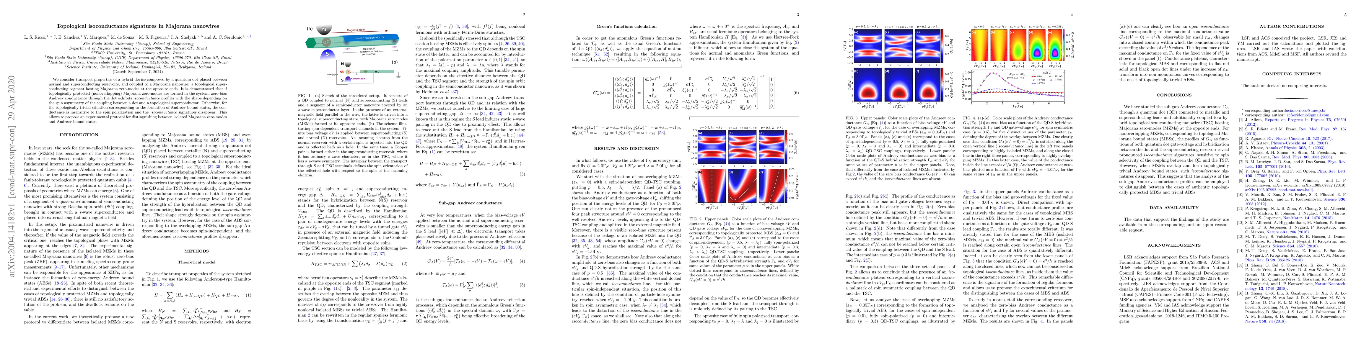 This paper investigates the transport properties of a hybrid device with a quantum dot between normal and superconducting reservoirs, coupled to a Majorana nanowire. It finds that topologically protected Majorana zero-modes lead to distinct isoconductance profiles, while trivial Andreev bound states do not, offering a method to distinguish between them experimentally.