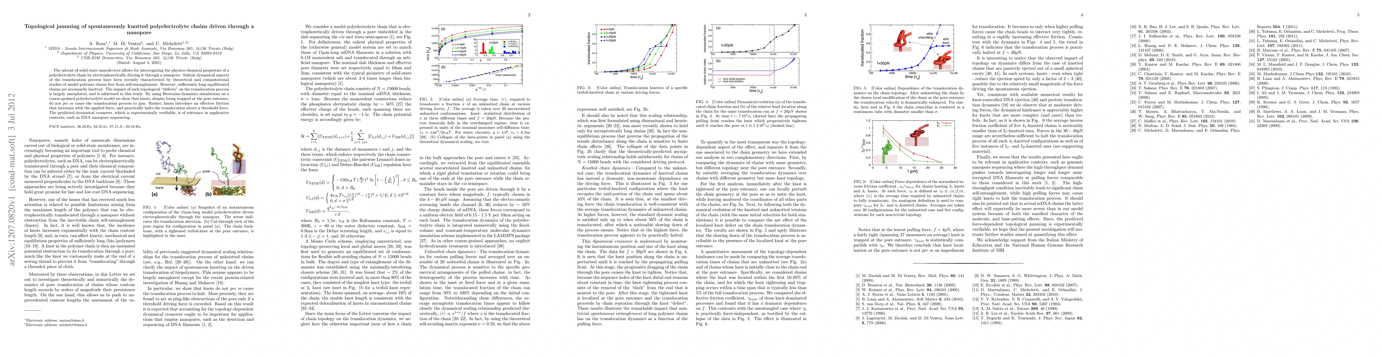 This study explores how knots in polyelectrolyte chains affect their electrophoretic translocation through a nanopore, revealing that knots introduce friction that halts the process above a certain force, with implications for DNA sequencing technologies.