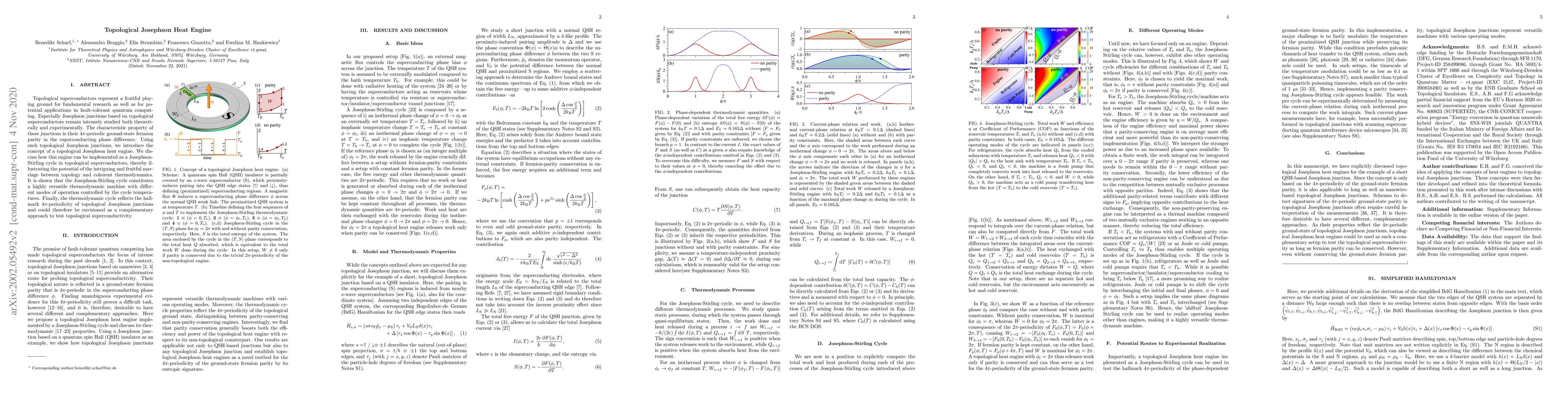 This paper proposes a topological Josephson heat engine based on a Josephson-Stirling cycle to test the $4\pi$-periodicity of topological superconductors. The study finds that parity conservation enhances both the efficiency and power of the topological heat engine compared to non-topological ones, highlighting the synergy between topology and coherent thermodynamics.