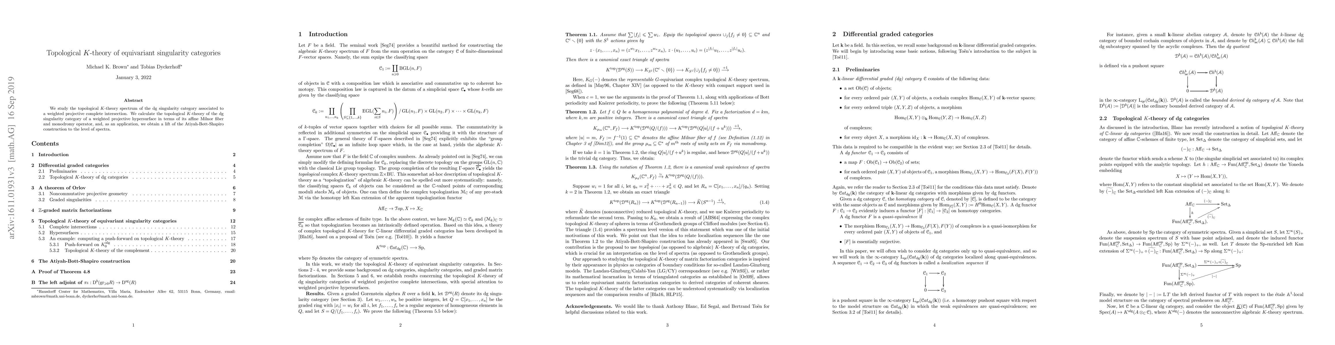 We study the topological K-theory spectrum of the dg singularity category associated to a weighted projective complete intersection. We calculate the topological K-theory of the dg singularity category of a weighted projective hypersurface in terms of its Milnor fiber and monodromy operator, and, as an application, we obtain a lift of the Atiyah-Bott-Shapiro construction to the level of spectra.
