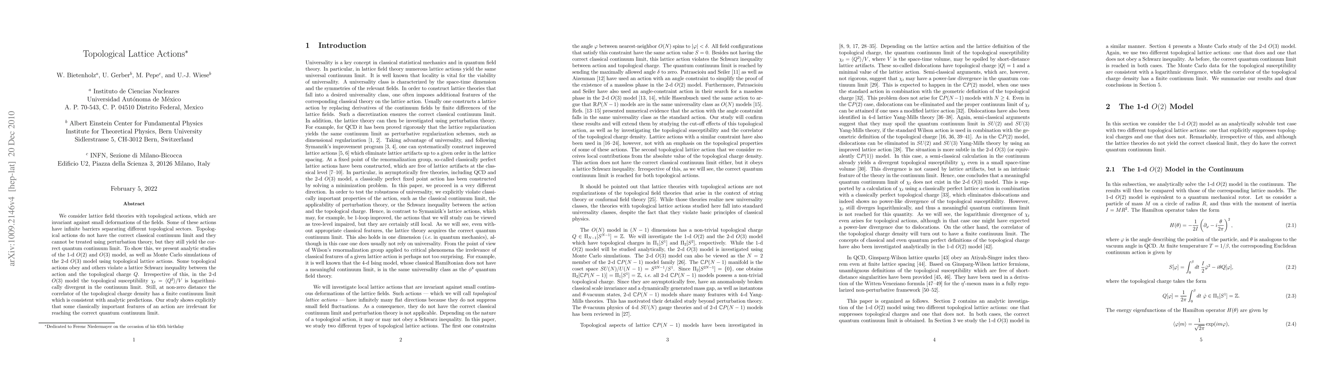 This paper explores lattice field theories with topological actions, demonstrating their unique quantum continuum limit despite lacking a proper classical limit. Through analytic studies and Monte Carlo simulations, it reveals that while some topological actions obey lattice Schwarz inequalities, others do not, yet all show a logarithmic divergence in topological susceptibility in the continuum limit.