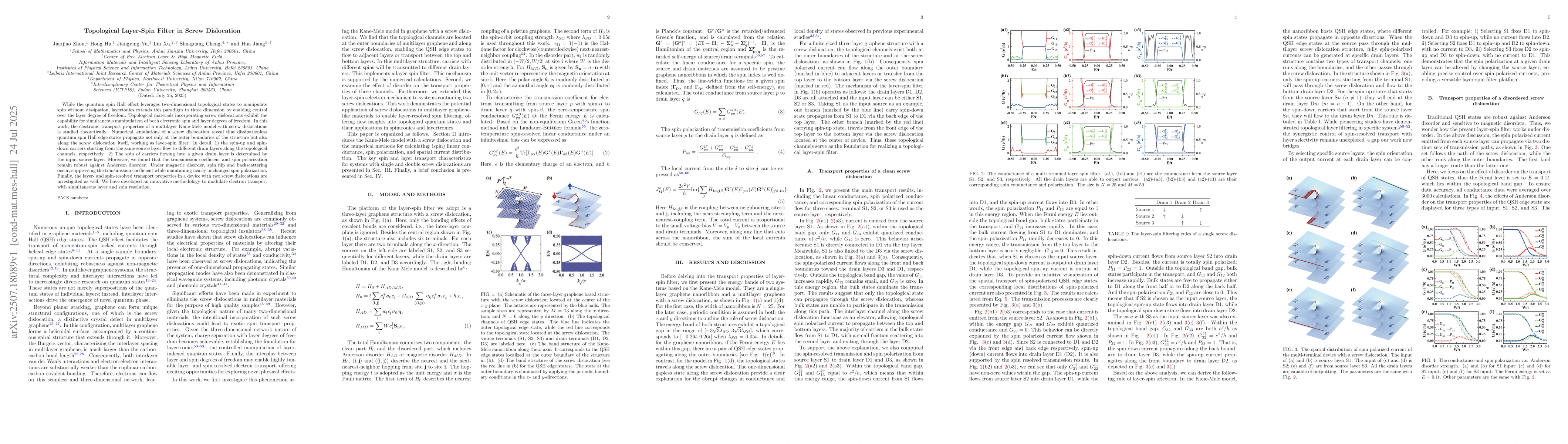 While the quantum spin Hall effect leverages two-dimensional topological states to manipulate spin without dissipation, layertonics extends this paradigm to three dimension by enabling control over the layer degree of freedom. Topological materials incorporating screw dislocations exhibit the capability for simultaneous manipulation of both electronic spin and layer degrees of freedom. In this work, the electronic transport properties of a multilayer Kane-Mele model with screw dislocations is studied theoretically. Numerical simulations of a screw dislocation reveal that dissipationless quantum spin Hall edge states propagate not only at the outer boundaries of the structure but also along the screw dislocation itself, working as layer-spin filter. In detail, 1) the spin-up and spin-down carriers starting from the same source layer flow to different drain layers along the topological channels, respectively. 2) The spin of carriers flowing into a given drain layer is determined by the input source layer. Moreover, we found that the transmission coefficient and spin polarization remain robust against Anderson disorder. Under magnetic disorder, spin flip and backscattering occur, suppressing the transmission coefficient while maintaining nearly unchanged spin polarization. Finally, the layer- and spin-resolved transport properties in a device with two screw dislocations are investigated as well. We have developed an innovative methodology to modulate electron transport with simultaneous layer and spin resolution.