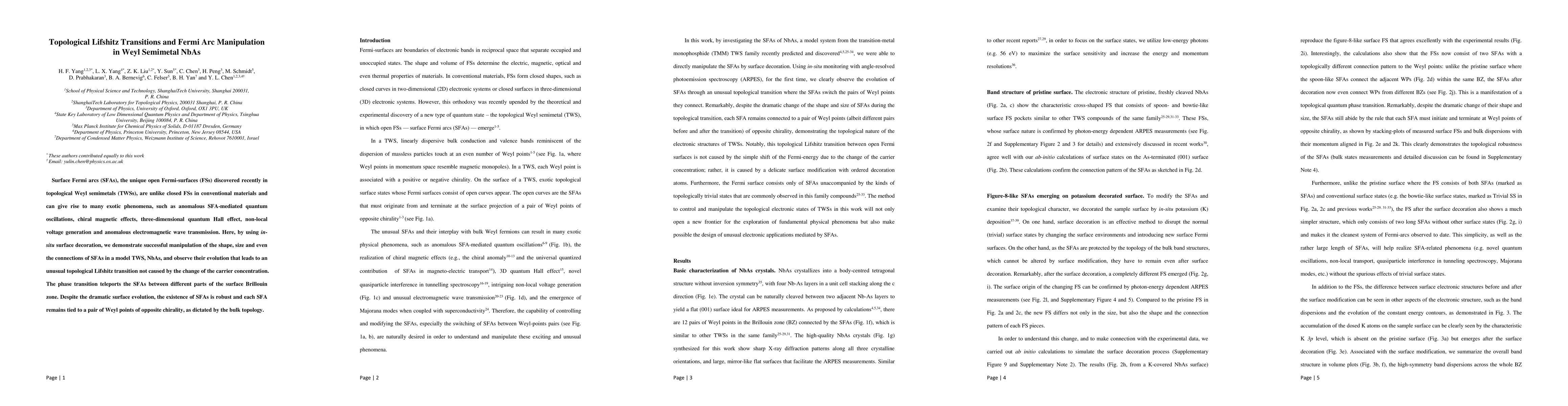 Researchers demonstrated manipulation of Fermi arcs in a topological Weyl semimetal, NbAs, showing an unusual topological Lifshitz transition that teleports the arcs between different parts of the surface Brillouin zone without changing carrier concentration.