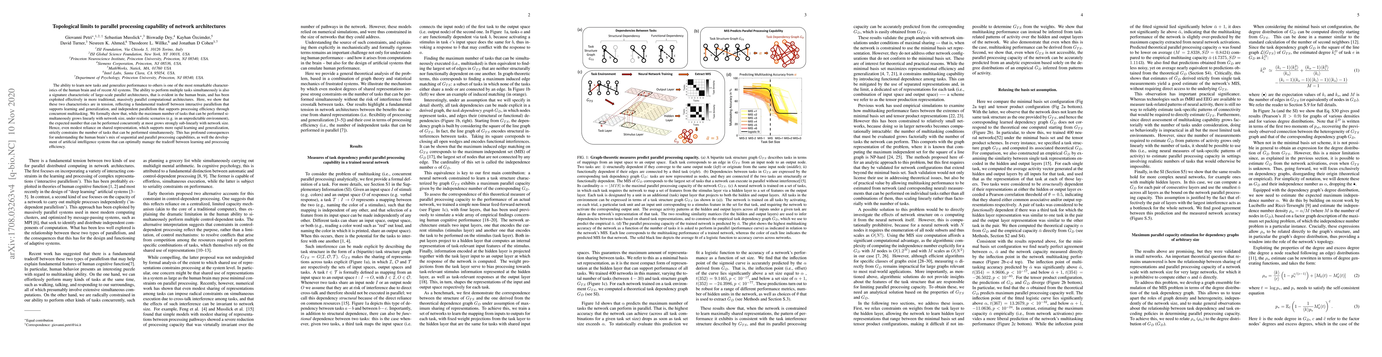 The ability to learn new tasks and generalize performance to others is one of the most remarkable characteristics of the human brain and of recent AI systems. The ability to perform multiple tasks simultaneously is also a signature characteristic of large-scale parallel architectures, that is evident in the human brain, and has been exploited effectively more traditional, massively parallel computational architectures. Here, we show that these two characteristics are in tension, reflecting a fundamental tradeoff between interactive parallelism that supports learning and generalization, and independent parallelism that supports processing efficiency through concurrent multitasking. We formally show that, while the maximum number of tasks that can be performed simultaneously grows linearly with network size, under realistic scenarios (e.g. in an unpredictable environment), the expected number that can be performed concurrently grows radically sub-linearly with network size. Hence, even modest reliance on shared representation strictly constrains the number of tasks that can be performed simultaneously, implying profound consequences for the development of artificial intelligence that optimally manages the tradeoff between learning and processing, and for understanding the human brains remarkably puzzling mix of sequential and parallel capabilities.