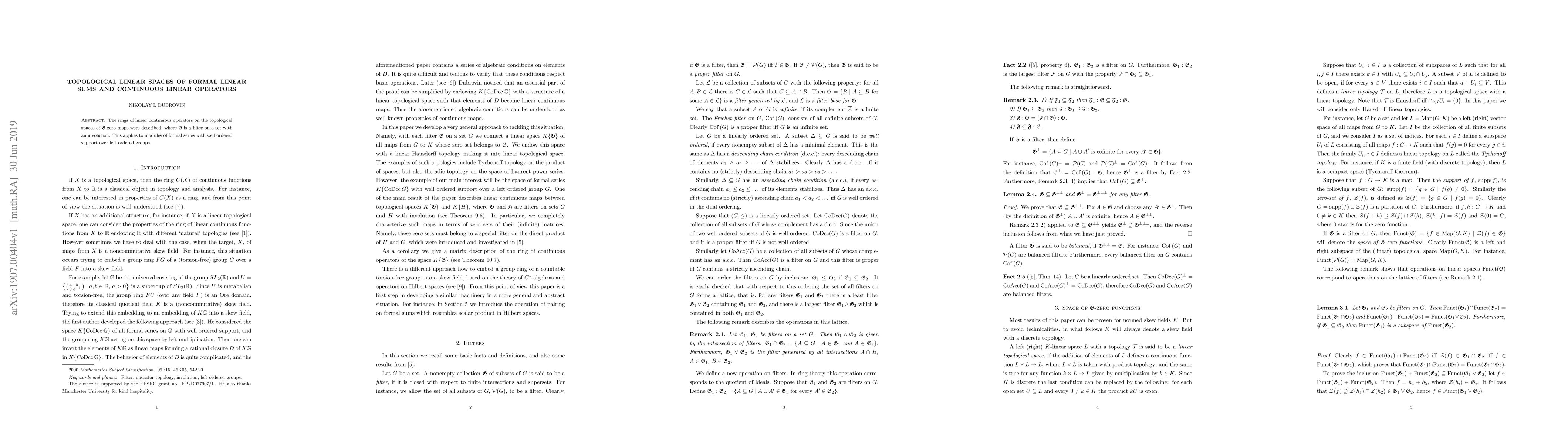 Researchers described a new class of topological spaces based on formal linear sums and continuous linear operators, which have implications for modules of formal series over left-ordered groups.
