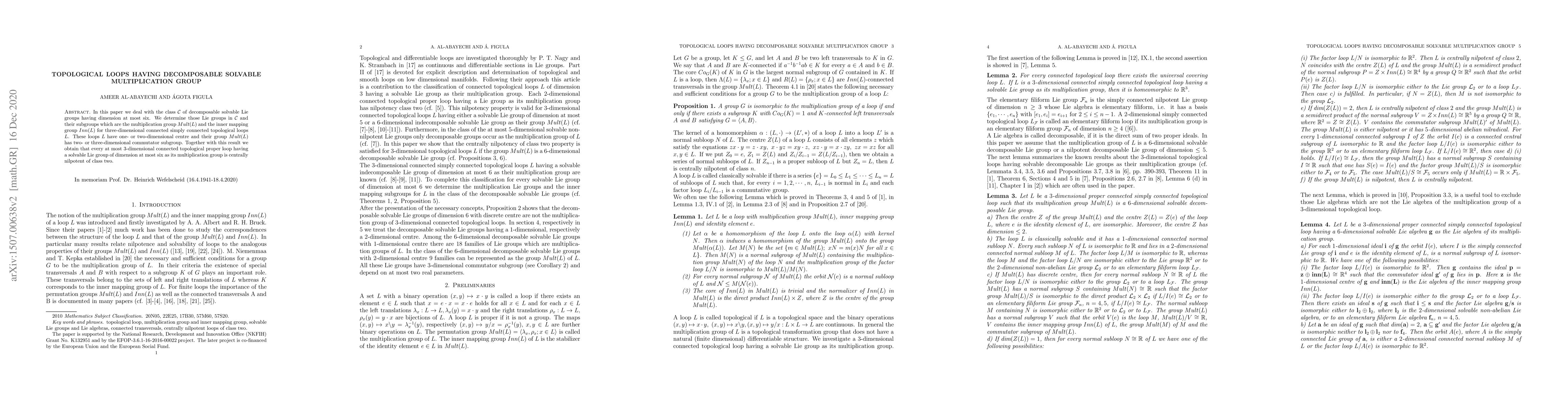 Researchers identified that 3-dimensional connected topological loops with solvable Lie groups of dimension at most six have specific subgroup properties, leading to the conclusion that these loops are centrally nilpotent of class two.