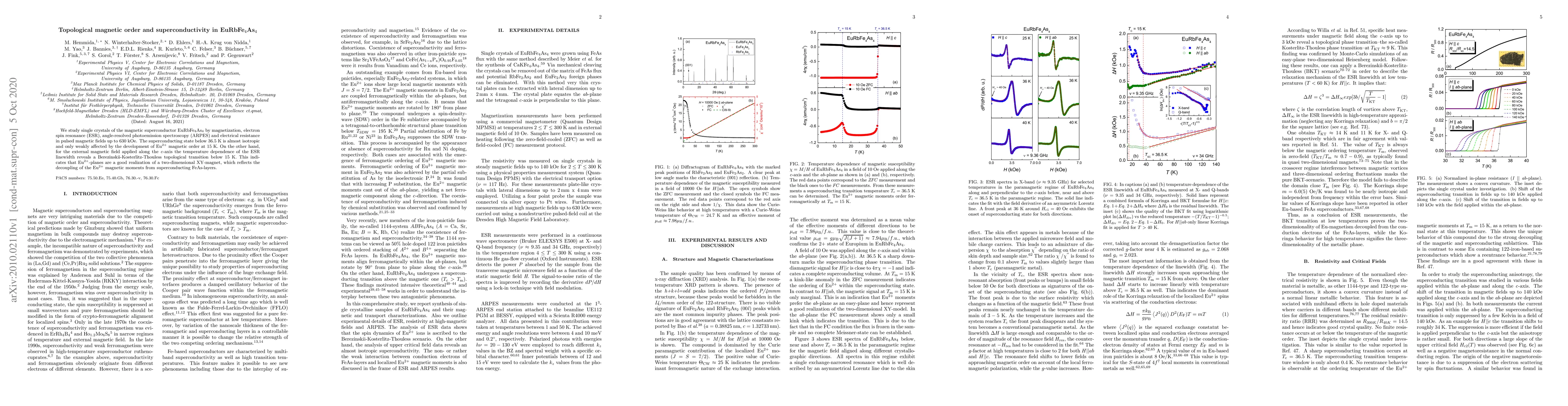 Researchers studied EuRbFe$_4$As$_4$, a magnetic superconductor, using various techniques to find that its superconducting state is nearly isotropic and weakly affected by the development of magnetic order at 15K, with a possible topological transition below 15K.
