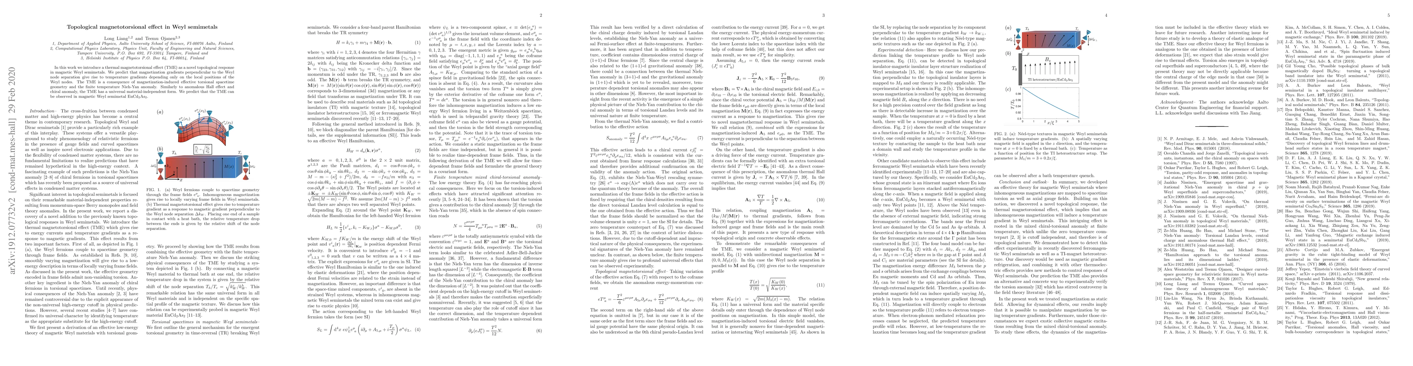 This research introduces a thermal magnetotorsional effect (TME) in magnetic Weyl semimetals, predicting that magnetization gradients generate temperature gradients tied to Weyl node positions. The TME arises from magnetization-induced effective torsional geometry and is akin to the anomalous Hall effect, exhibiting a universal form. The study suggests that EuCd$_2$As$_2$ could exhibit this novel topological response.