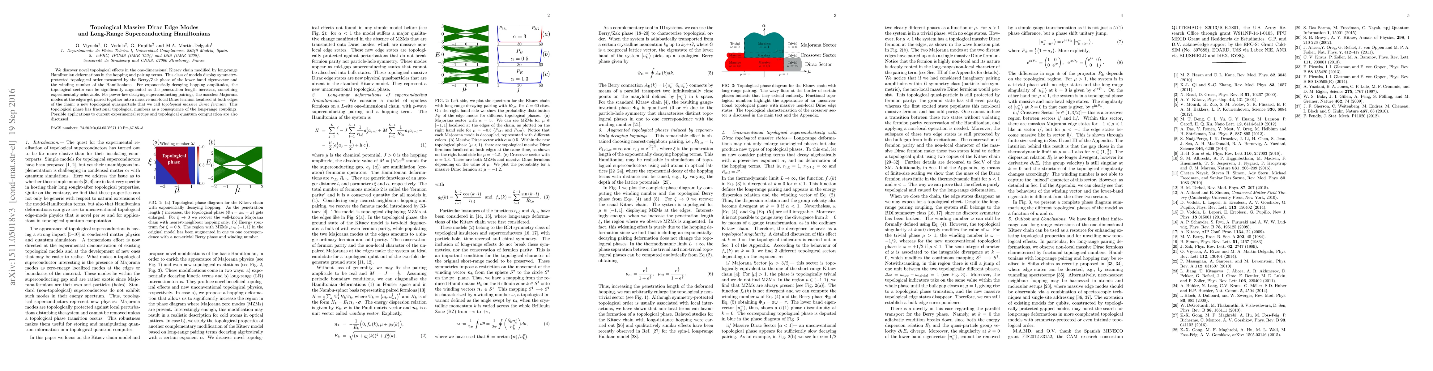 Researchers discovered a new topological phase with a massive Dirac fermion localized at both edges of a 1D Kitaev chain, which can be augmented as the hopping amplitudes increase exponentially or paired together through superconducting pairings.