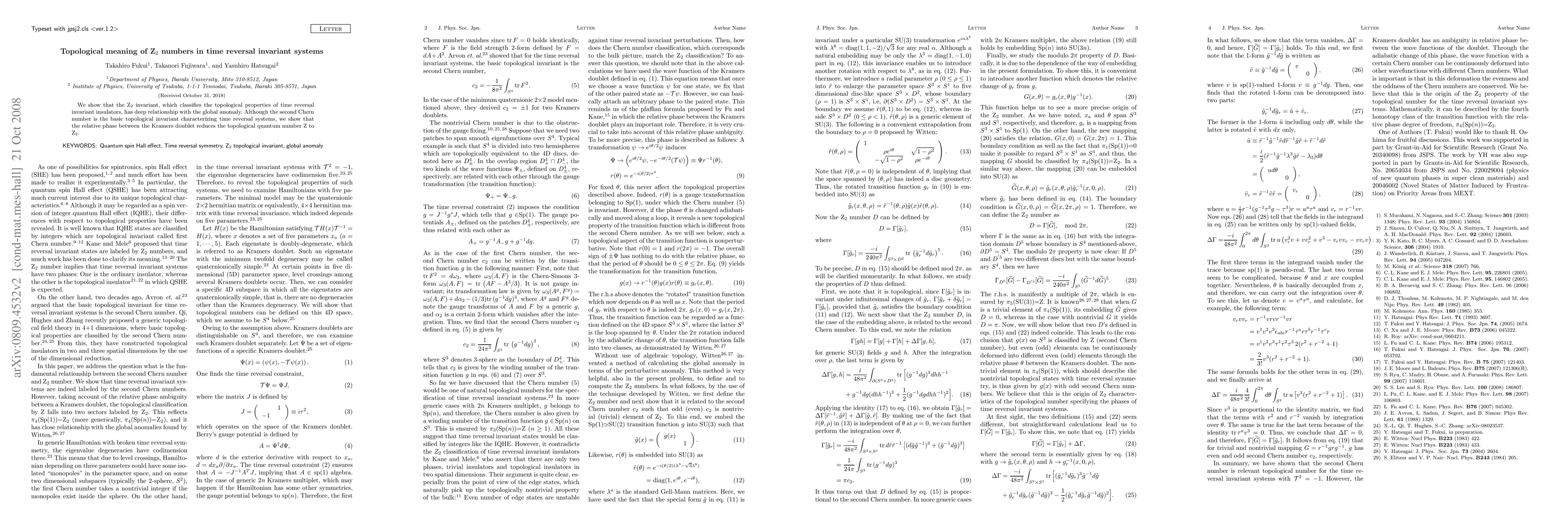This paper reveals the Z$_2$ invariant's link to global anomalies in time reversal invariant insulators, showing how the relative phase between Kramers doublets reduces the topological quantum number from a second Chern number to a Z$_2$ classification.