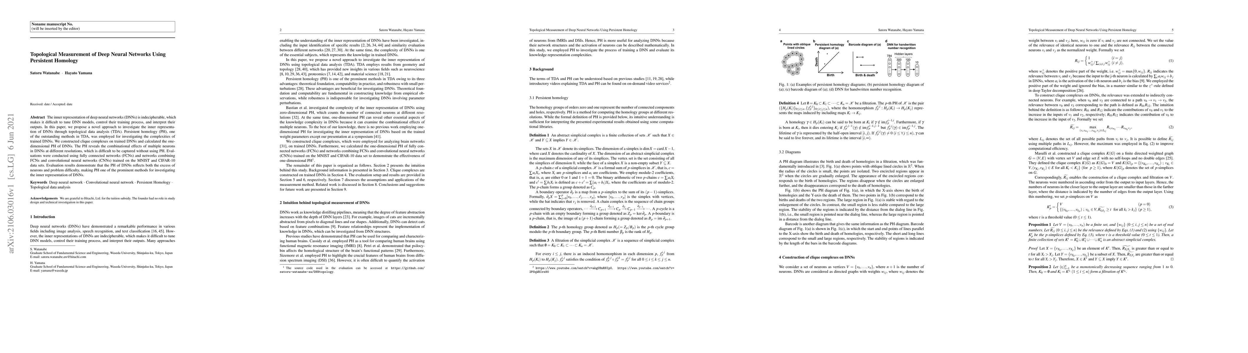 The inner representation of deep neural networks (DNNs) is indecipherable, which makes it difficult to tune DNN models, control their training process, and interpret their outputs. In this paper, we propose a novel approach to investigate the inner representation of DNNs through topological data analysis (TDA). Persistent homology (PH), one of the outstanding methods in TDA, was employed for investigating the complexities of trained DNNs. We constructed clique complexes on trained DNNs and calculated the one-dimensional PH of DNNs. The PH reveals the combinational effects of multiple neurons in DNNs at different resolutions, which is difficult to be captured without using PH. Evaluations were conducted using fully connected networks (FCNs) and networks combining FCNs and convolutional neural networks (CNNs) trained on the MNIST and CIFAR-10 data sets. Evaluation results demonstrate that the PH of DNNs reflects both the excess of neurons and problem difficulty, making PH one of the prominent methods for investigating the inner representation of DNNs.
