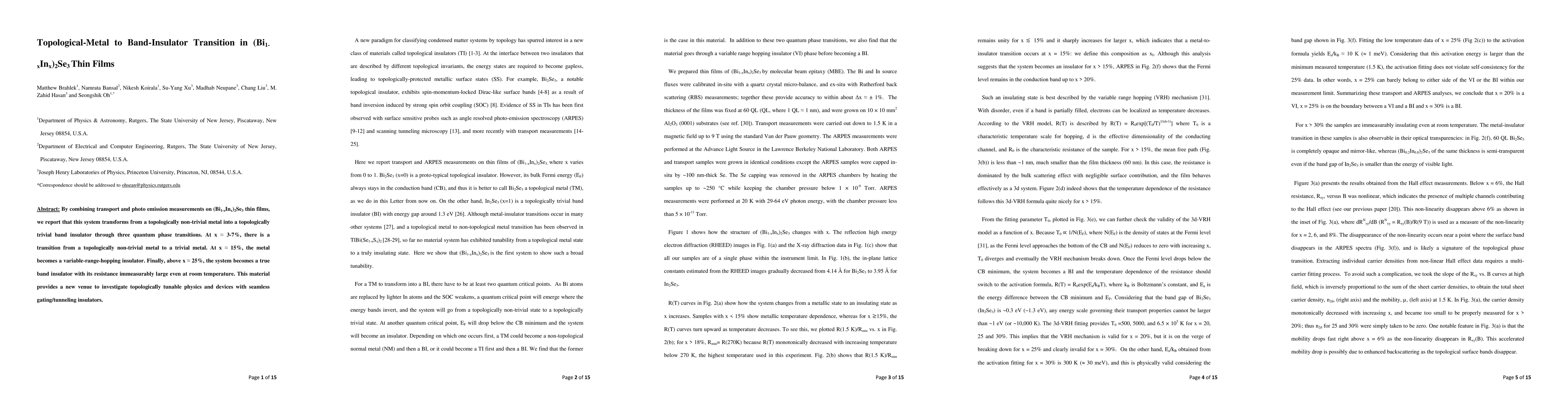 This paper investigates the quantum phase transitions in (Bi1-xInx)2Se3 thin films, revealing a transition from a topologically non-trivial metal to a topologically trivial band insulator through three distinct phases. The material shows potential for tunable topological physics and practical applications in devices.