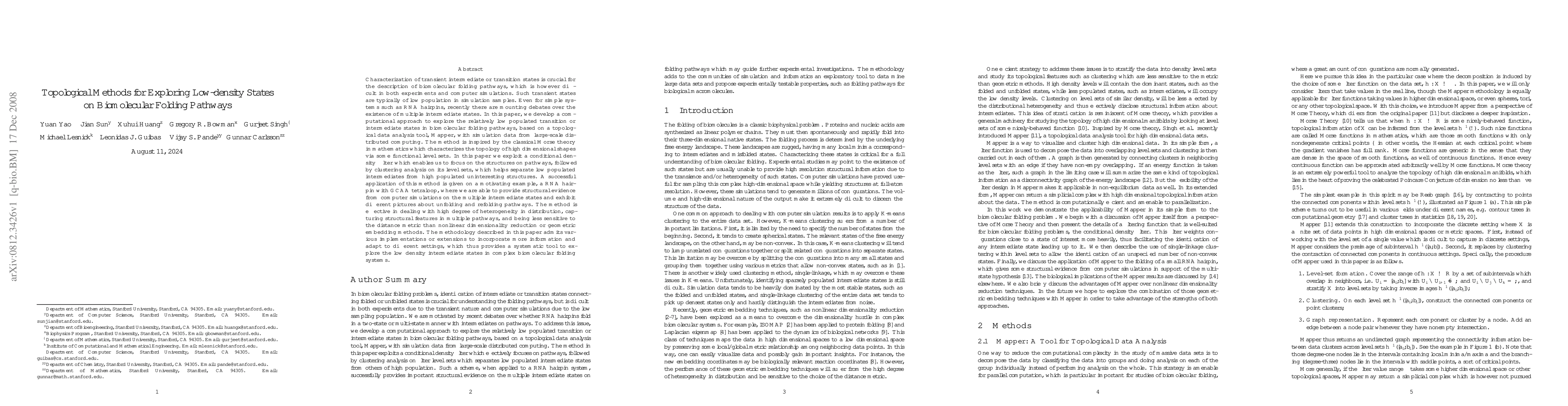 This paper develops a computational approach using topological data analysis, specifically the Mapper method, to identify low-populated intermediate states in biomolecular folding pathways. The method successfully reveals multiple intermediate states in a RNA hairpin example, demonstrating its effectiveness in handling heterogeneity and capturing structural features in complex folding systems.