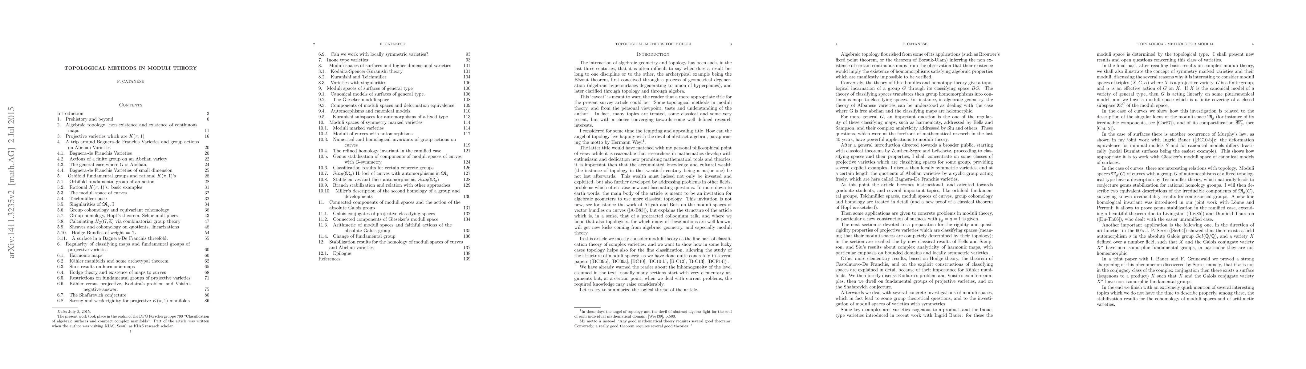 One of the main themes of this long article is the study of projective varieties which are K(H,1)'s, i.e. classifying spaces BH for some discrete group H. After recalling the basic properties of such classifying spaces, an important class of such varieties is introduced, the one of Bagnera-de Franchis varieties, the quotients of an Abelian variety by the free action of a cyclic group. Moduli spaces of Abelian varieties and of algebraic curves enter into the picture as examples of rational K(H,1)'s, through Teichmueller theory. The main thrust of the paper is to show how in the case of K(H,1)'s the study of moduli spaces and deformation classes can be achieved through by now classical results concerning regularity of classifying maps. The Inoue type varieties of Bauer and Catanese are introduced and studied as a key example, and new results are shown. Motivated from this study, the moduli spaces of algebraic varieties, and especially of algebraic curves with a group of automorphisms of a given topological type are studied in detail, following new results by the author, Michael Loenne and Fabio Perroni. Finally, the action of the absolute Galois group on the moduli spaces of such K(H,1) varieties is studied. In the case of surfaces isogenous to a product, it is shown how this yields a faifhtul action on the set of connected components of the moduli space: for each Galois automorphisms of order different from 2 there is a surface S such that the Galois conjugate surface of S has fundamental group not isomorphic to the one of S.