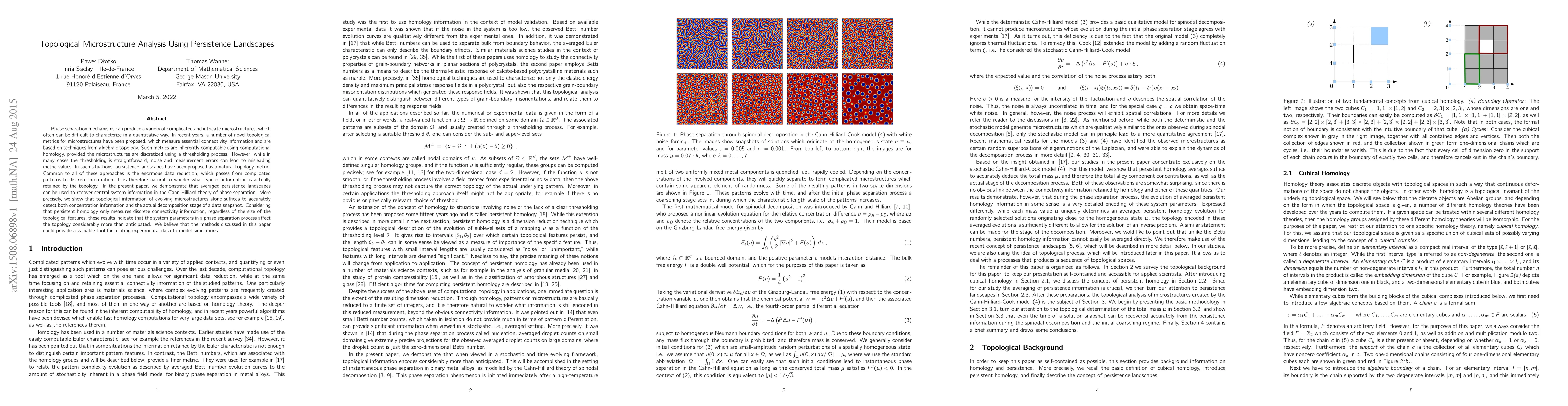 Phase separation mechanisms can produce a variety of complicated and intricate microstructures, which often can be difficult to characterize in a quantitative way. In recent years, a number of novel topological metrics for microstructures have been proposed, which measure essential connectivity information and are based on techniques from algebraic topology. Such metrics are inherently computable using computational homology, provided the microstructures are discretized using a thresholding process. However, while in many cases the thresholding is straightforward, noise and measurement errors can lead to misleading metric values. In such situations, persistence landscapes have been proposed as a natural topology metric. Common to all of these approaches is the enormous data reduction, which passes from complicated patterns to discrete information. It is therefore natural to wonder what type of information is actually retained by the topology. In the present paper, we demonstrate that averaged persistence landscapes can be used to recover central system information in the Cahn-Hilliard theory of phase separation. More precisely, we show that topological information of evolving microstructures alone suffices to accurately detect both concentration information and the actual decomposition stage of a data snapshot. Considering that persistent homology only measures discrete connectivity information, regardless of the size of the topological features, these results indicate that the system parameters in a phase separation process affect the topology considerably more than anticipated. We believe that the methods discussed in this paper could provide a valuable tool for relating experimental data to model simulations.
