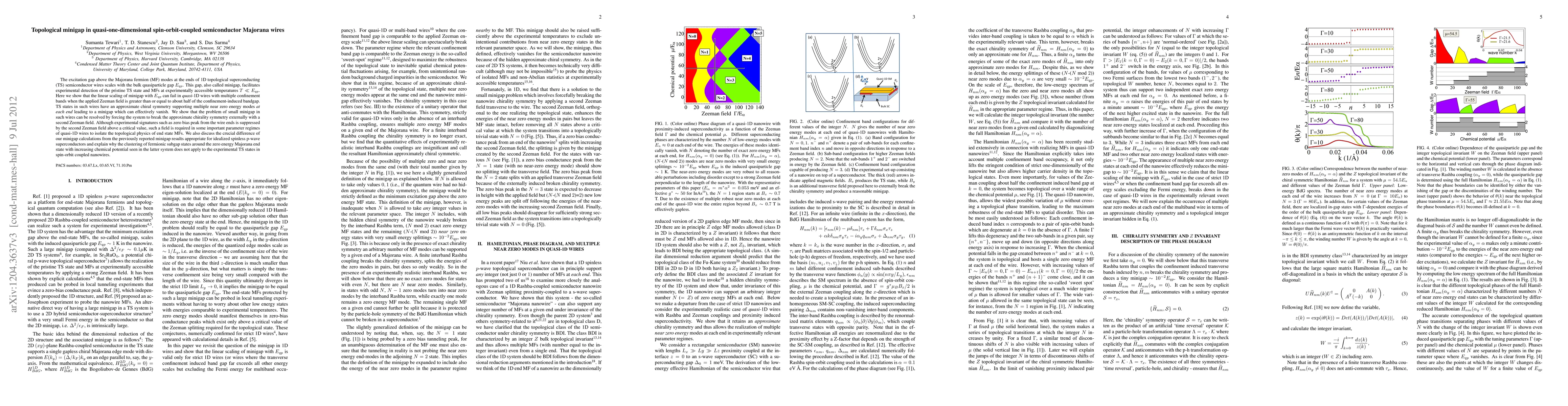 This research investigates the topological minigap in quasi-one-dimensional spin-orbit-coupled semiconductor Majorana wires, revealing that its linear scaling can break down under strong Zeeman fields, potentially causing the minigap to vanish. The solution proposed involves applying an additional Zeeman field to break chiral symmetry, crucial for preserving the topological properties of Majorana fermions at experimentally feasible temperatures.