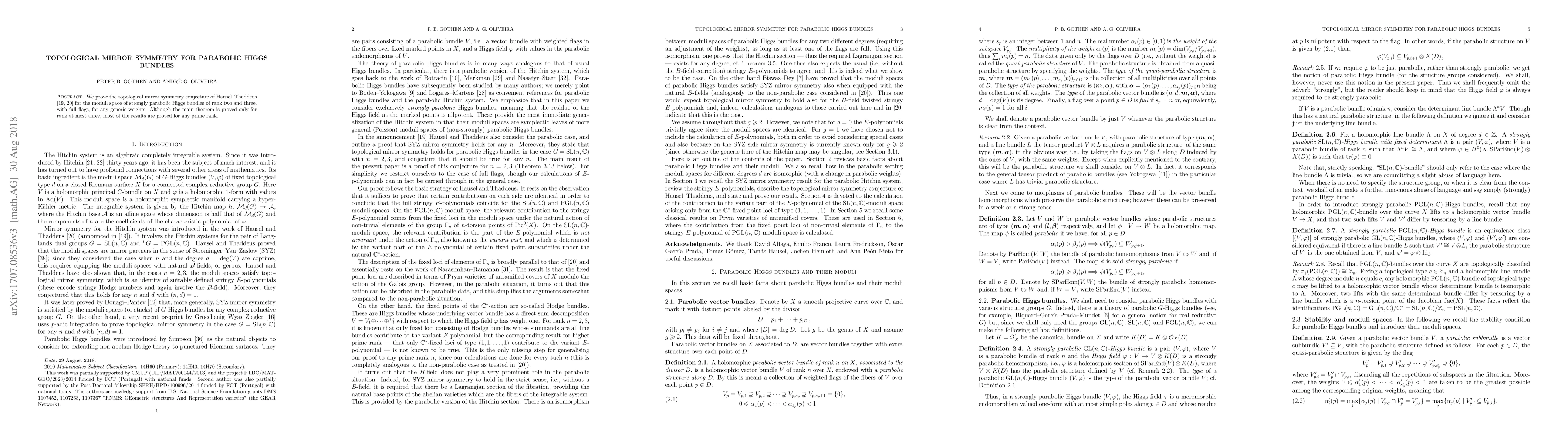 This paper proves the topological mirror symmetry conjecture for the moduli space of strongly parabolic Higgs bundles of rank two or three, with full flags, extending most results to any prime rank. The main theorem's validity is confirmed only up to rank three.