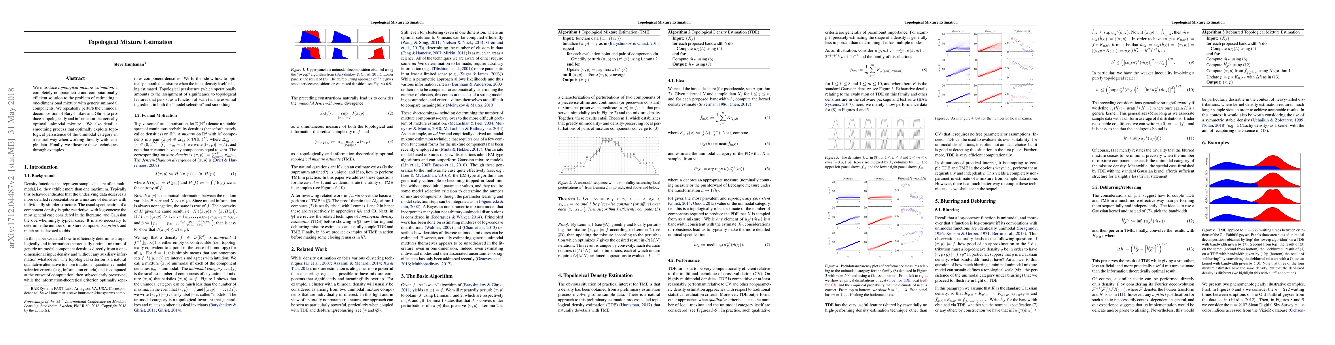 This paper introduces topological mixture estimation, a nonparametric method for estimating density functions with multiple modes. It proposes a computational efficient approach to determine the optimal number of unimodal components in a mixture.