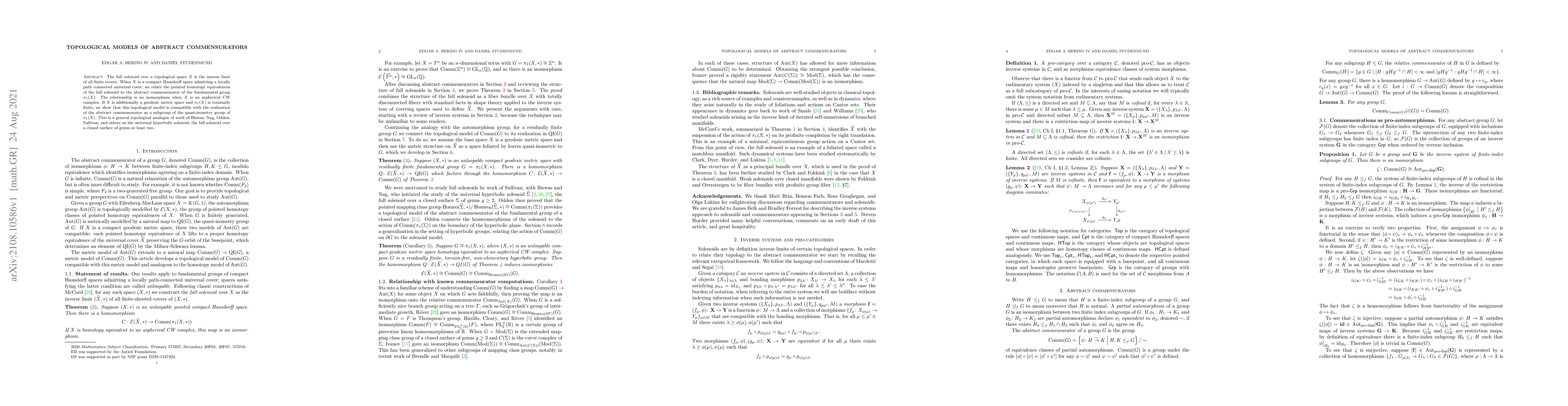 The full solenoid over a topological space $X$ is the inverse limit of all finite covers. When $X$ is a compact Hausdorff space admitting a locally path connected universal cover, we relate the pointed homotopy equivalences of the full solenoid to the abstract commensurator of the fundamental group $\pi_1(X)$. The relationship is an isomorphism when $X$ is an aspherical CW complex. If $X$ is additionally a geodesic metric space and $\pi_1(X)$ is residually finite, we show that this topological model is compatible with the realization of the abstract commensurator as a subgroup of the quasi-isometry group of $\pi_1(X)$. This is a general topological analogue of work of Biswas, Nag, Odden, Sullivan, and others on the universal hyperbolic solenoid, the full solenoid over a closed surface of genus at least two.