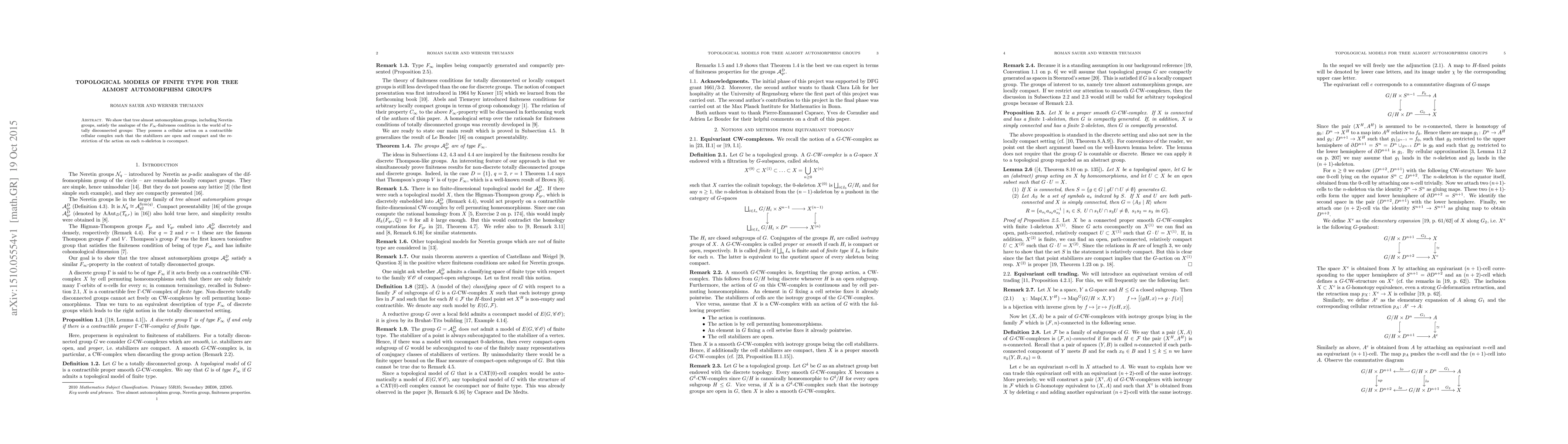We show that tree almost automorphism groups, including Neretin groups, satisfy the analogue of the $F_\infty$-finiteness condition in the world of totally disconnected groups: They possess a cellular action on a contractible cellular complex such that the stabilizers are open and compact and the restriction of the action on each $n$-skeleton is cocompact.