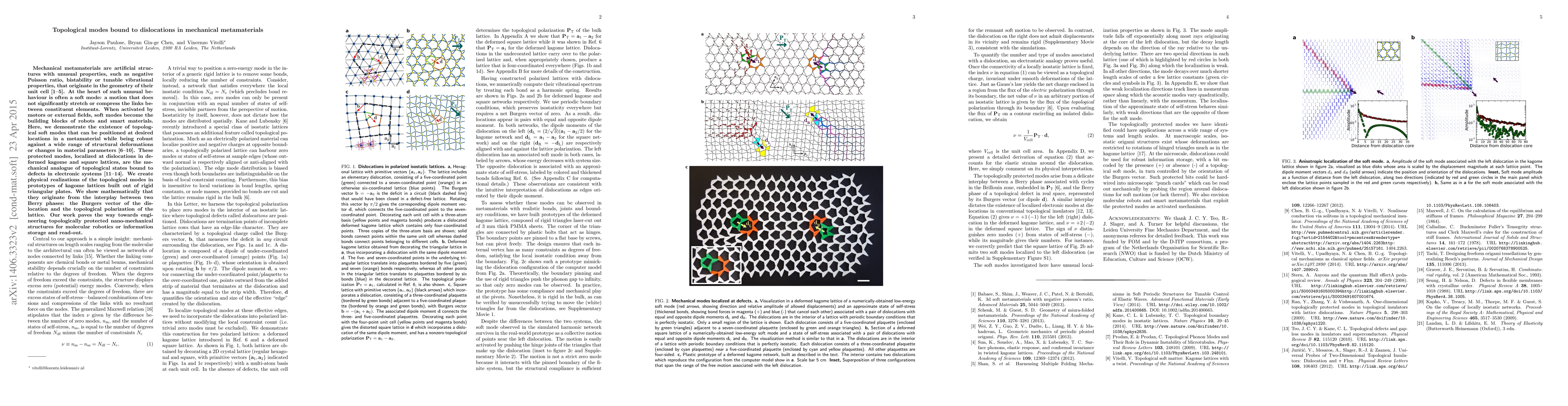 This paper demonstrates topological soft modes bound to dislocations in mechanical metamaterials, which remain robust against structural deformations. These modes, analogous to topological states in electronic systems, are mathematically shown to arise from the interplay between the Burgers vector and topological polarization, paving the way for advanced nano-mechanical applications.