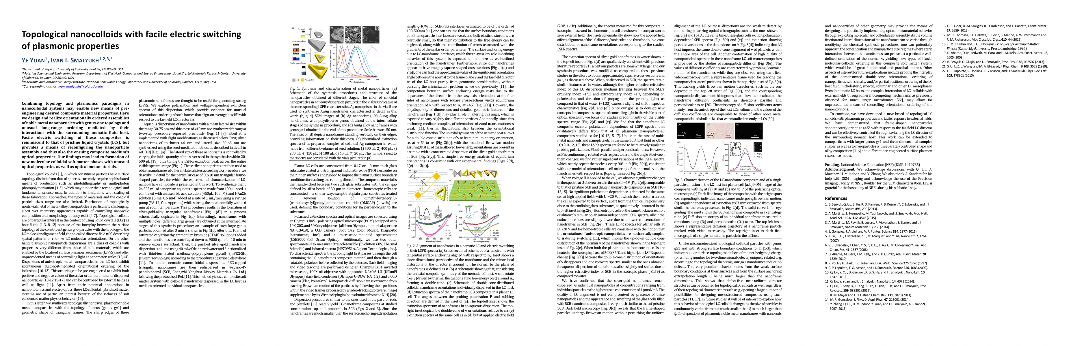 Researchers created nanocolloids with topological structure that can easily change their optical properties under electric switching, opening up possibilities for new materials with unique optical characteristics.