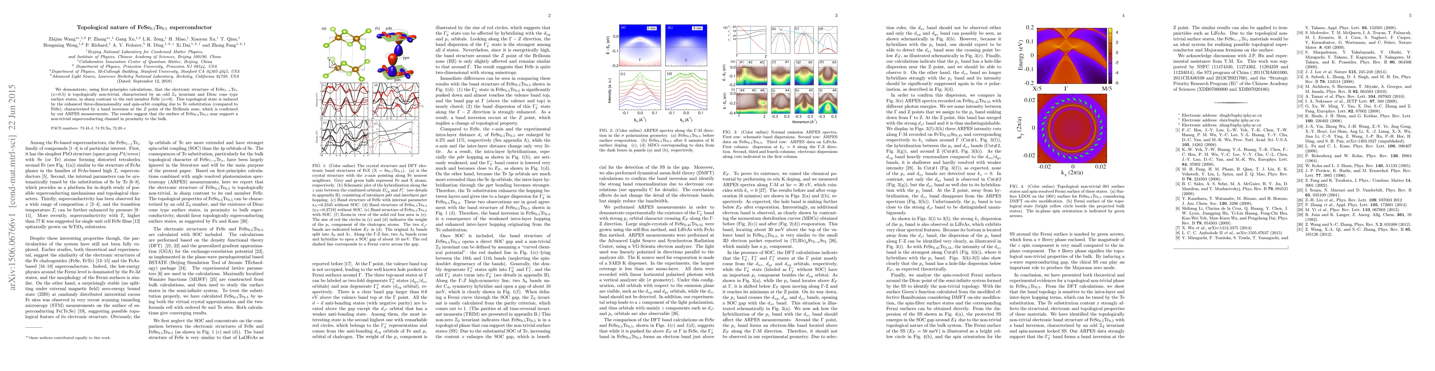 We demonstrate, using first-principles calculations, that the electronic structure of FeSe$_{1-x}$Te$_{x}$ ($x$=0.5) is topologically non-trivial, characterized by an odd $\mathbb Z_2$ invariant and Dirac cone type surface states, in sharp contrast to the end member FeSe ($x$=0). This topological state is induced by the enhanced three-dimensionality and spin-orbit coupling due to Te substitution (compared to FeSe), characterized by a band inversion at the $Z$ point of the Brillouin zone, which is confirmed by our ARPES measurements. The results suggest that the surface of FeSe$_{0.5}$Te$_{0.5}$ may support a non-trivial superconducting channel in proximity to the bulk.