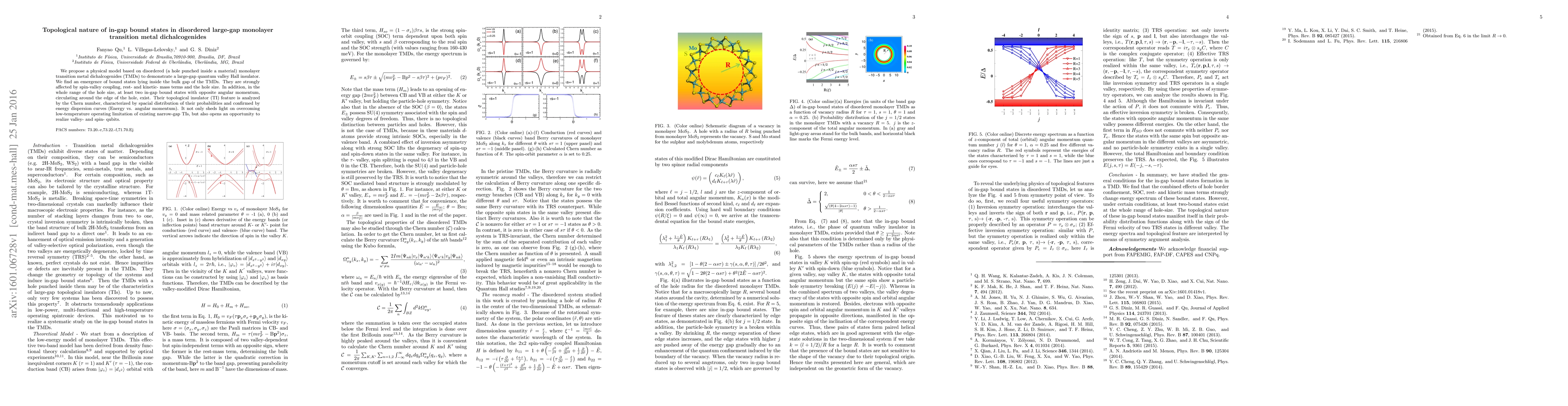 Researchers propose a new material that combines properties of quantum Hall insulators and valley- and spin-qubits, creating in-gap bound states in disordered large-gap monolayer transition metal dichalcogenides.