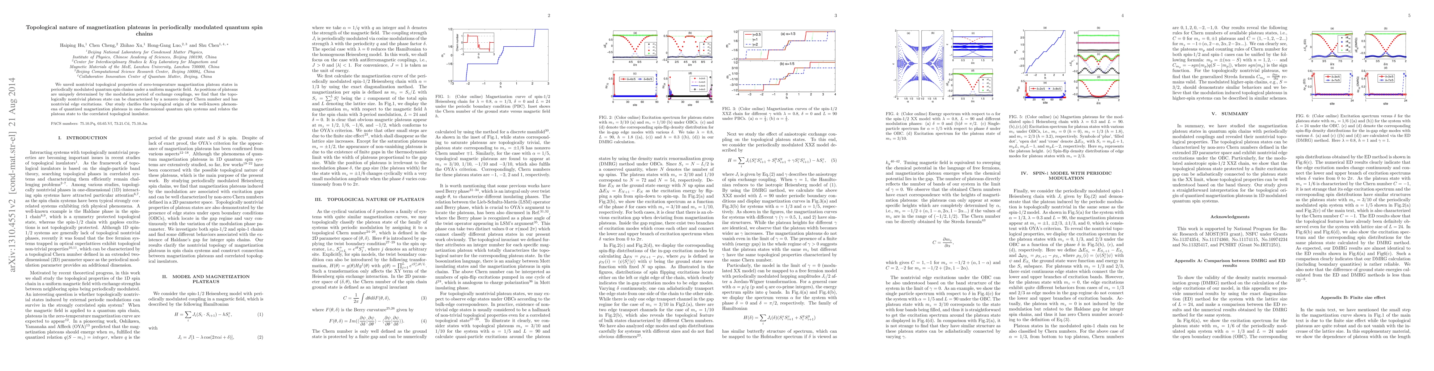 This paper explores the topological properties of magnetization plateaus in periodically modulated quantum spin chains, revealing that these plateaus are characterized by a nonzero integer Chern number and exhibit nontrivial edge excitations, thus linking the phenomena to correlated topological insulators.